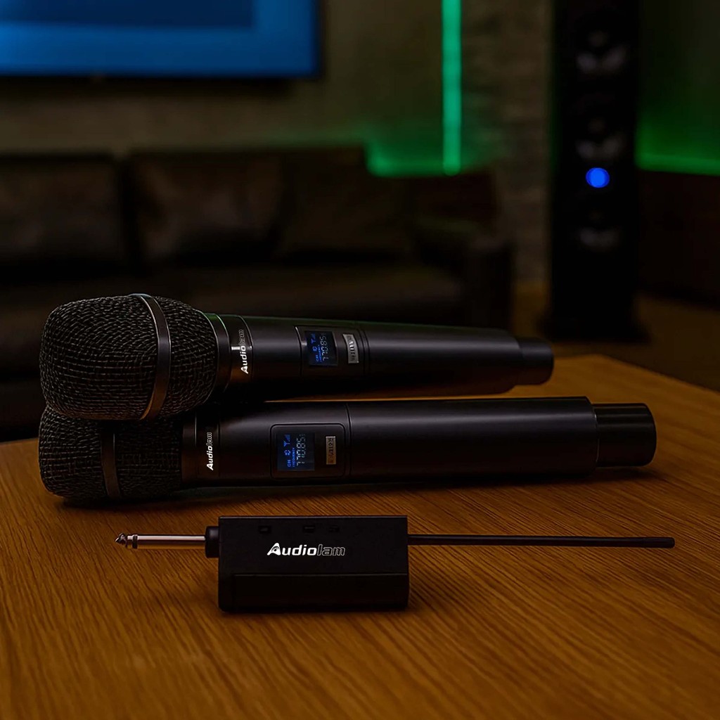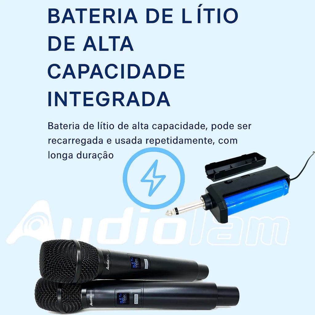 Microfone Recarregável Sem Fio Profissional Dinâmico Duplo