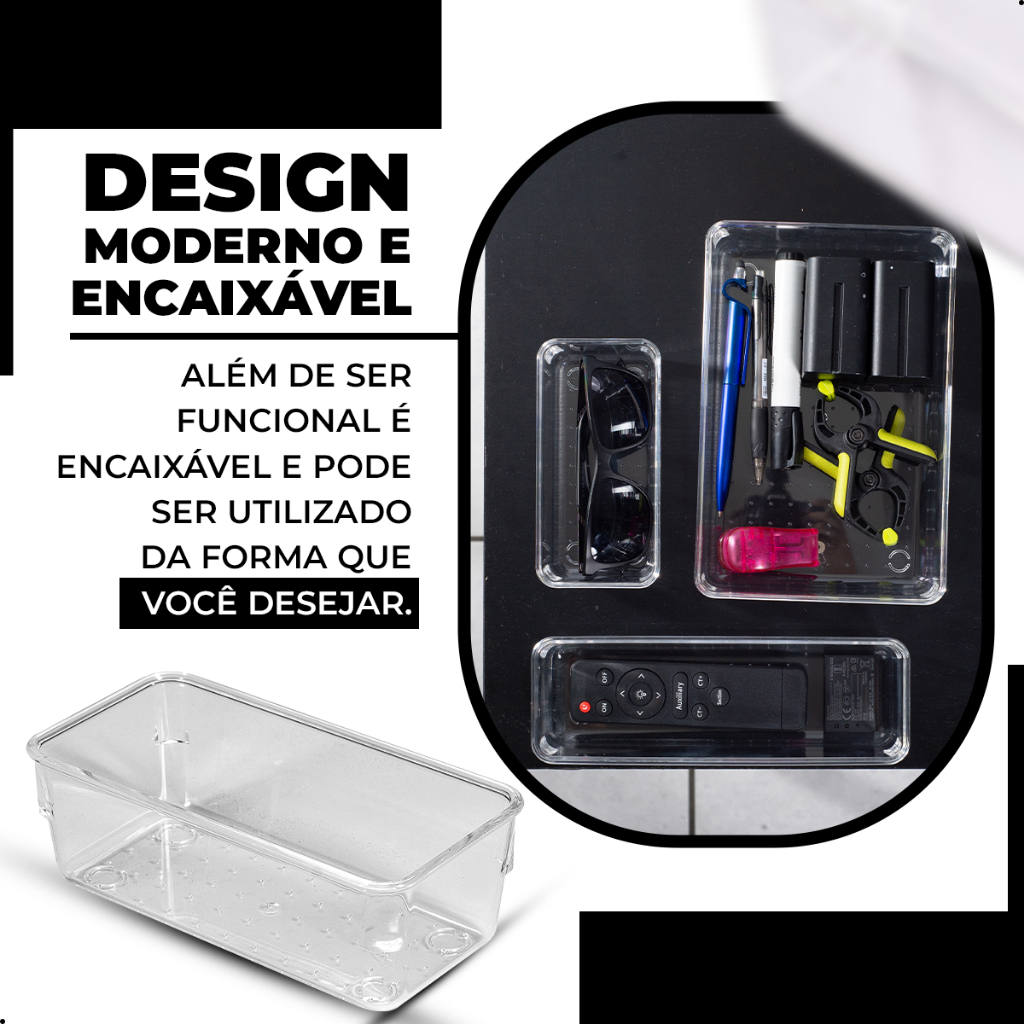 Vittak Kit 7 Organizadores Multiuso Modular Potes em Acrílico Transparente Para Gaveta Armário Maquiagem e Geladeira