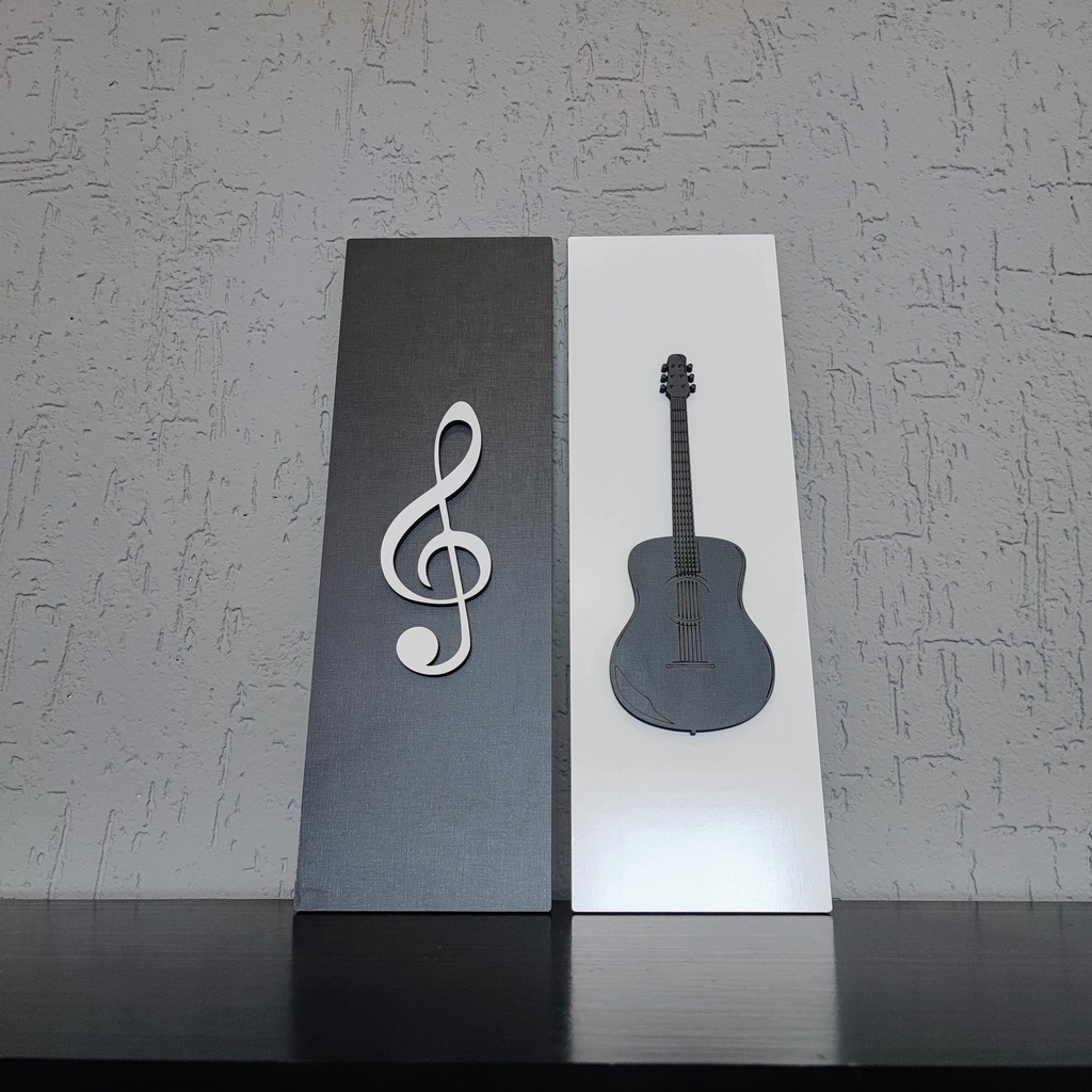 Kit de Quadros de Música em MDF com Gravação a Laser Decoração Clave de Sol e Violão