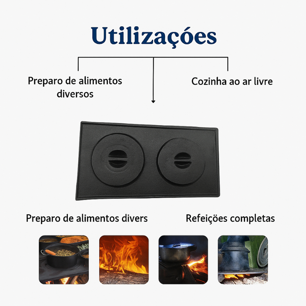 Chapa Fogão a Lenha 2 Furos c/ Tampa Ferro Fundido Paulista