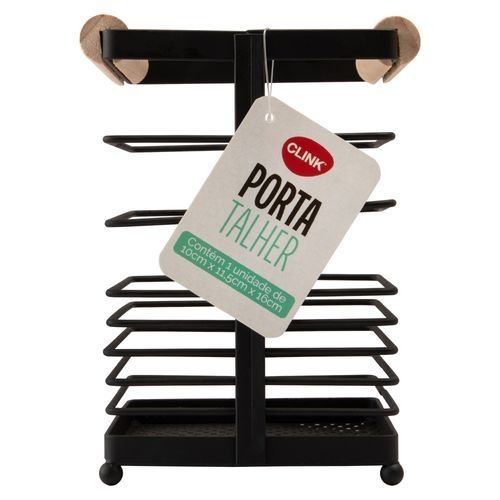 Porta Talher Escorredor Alça de Madeira e Ferro Preto-6380