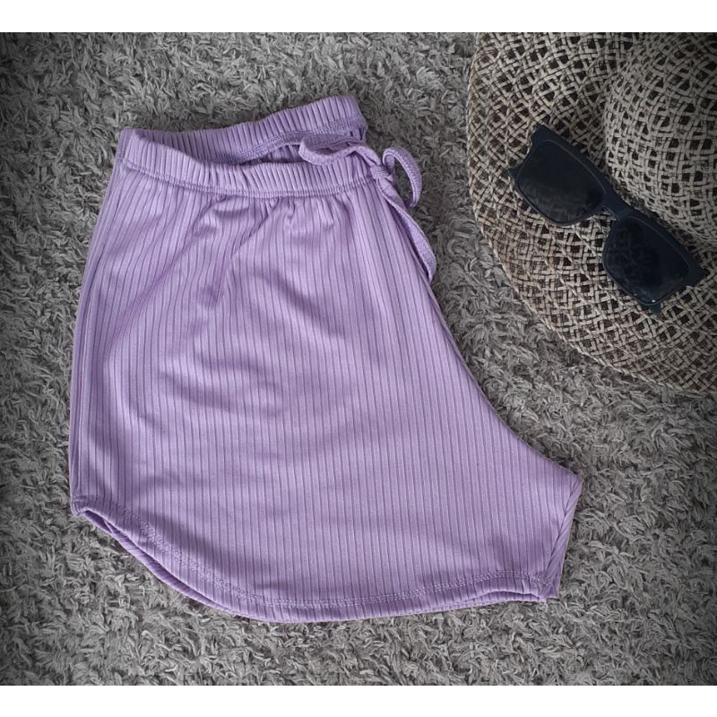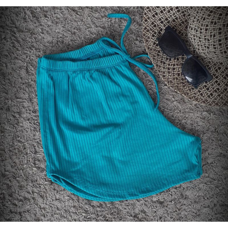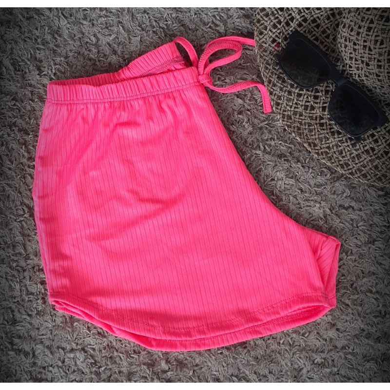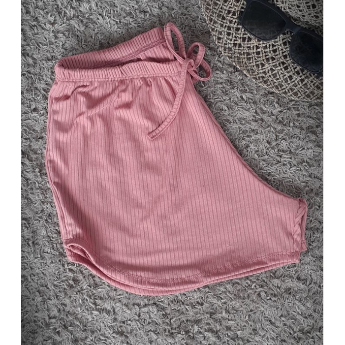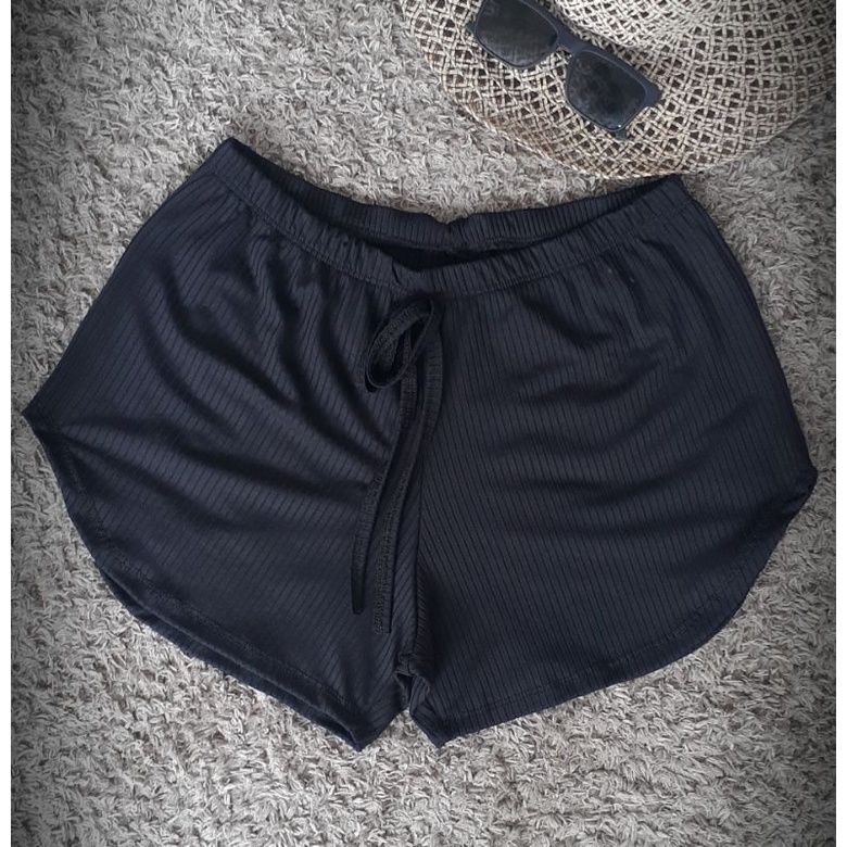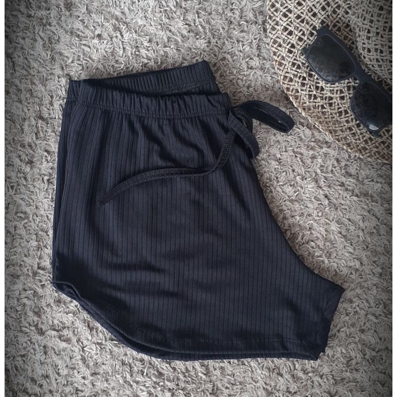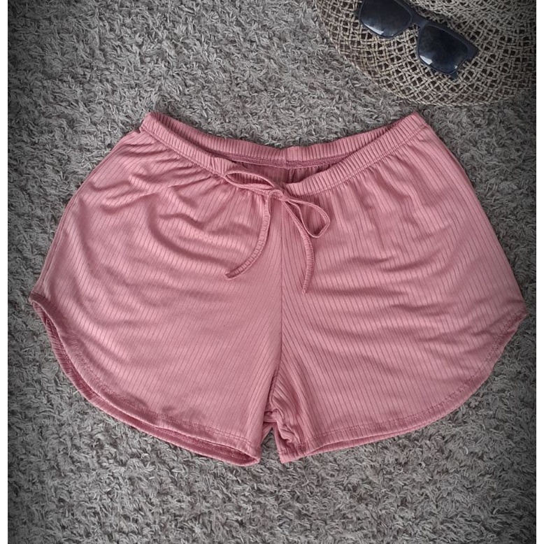 Short feminino Malha canelado Tecido canelado