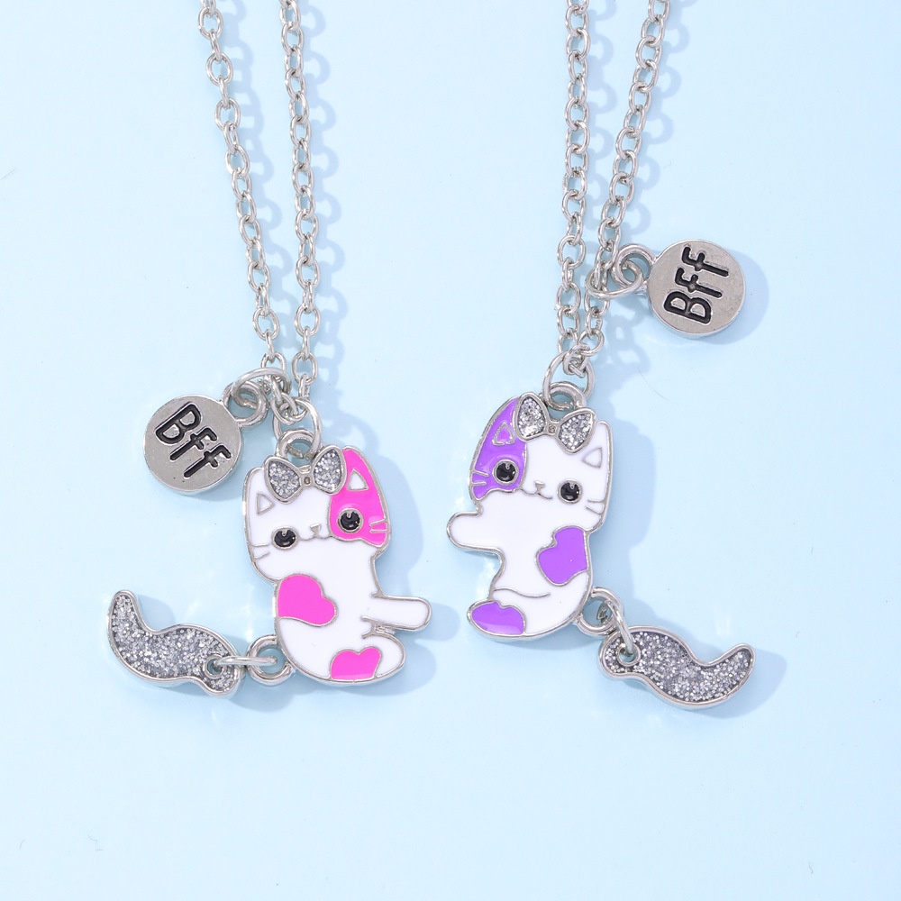 READY STOCK 2PCS Gatos Bonitos Colares Magnéticos Para Mulher Moda Adorável Melhores Amigos Neko Bowknot Pendant Chain BFF Amizade Jóias Presentes
