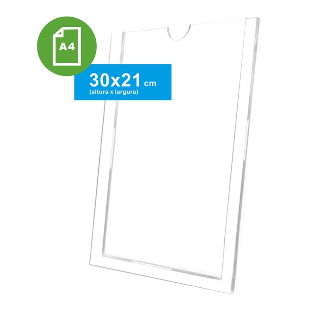 Display A4 Expositor De Parede Acrílico Porta Folha 21x30cm com borda Branca