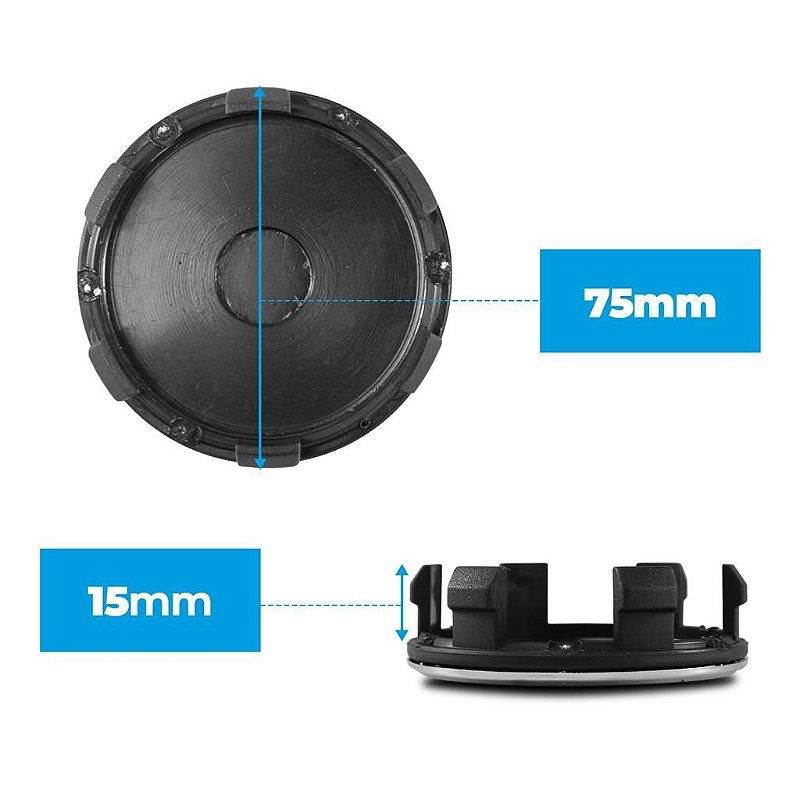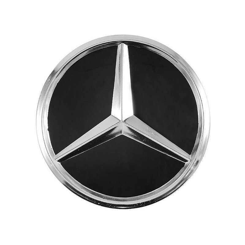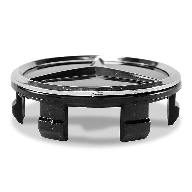 Jogo Calotinha Mercedes 75mm Preta Brilhante com Emblema Cromado