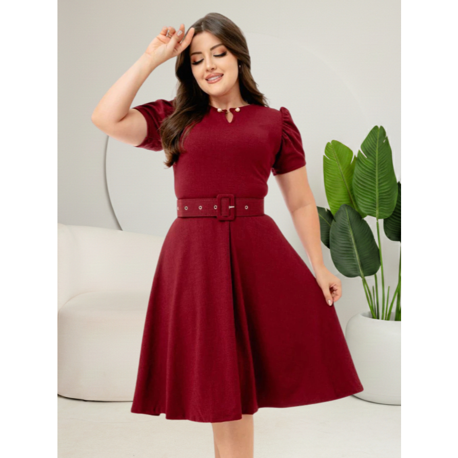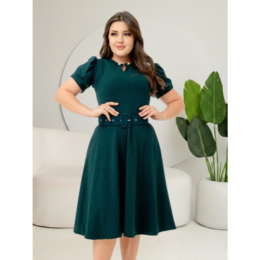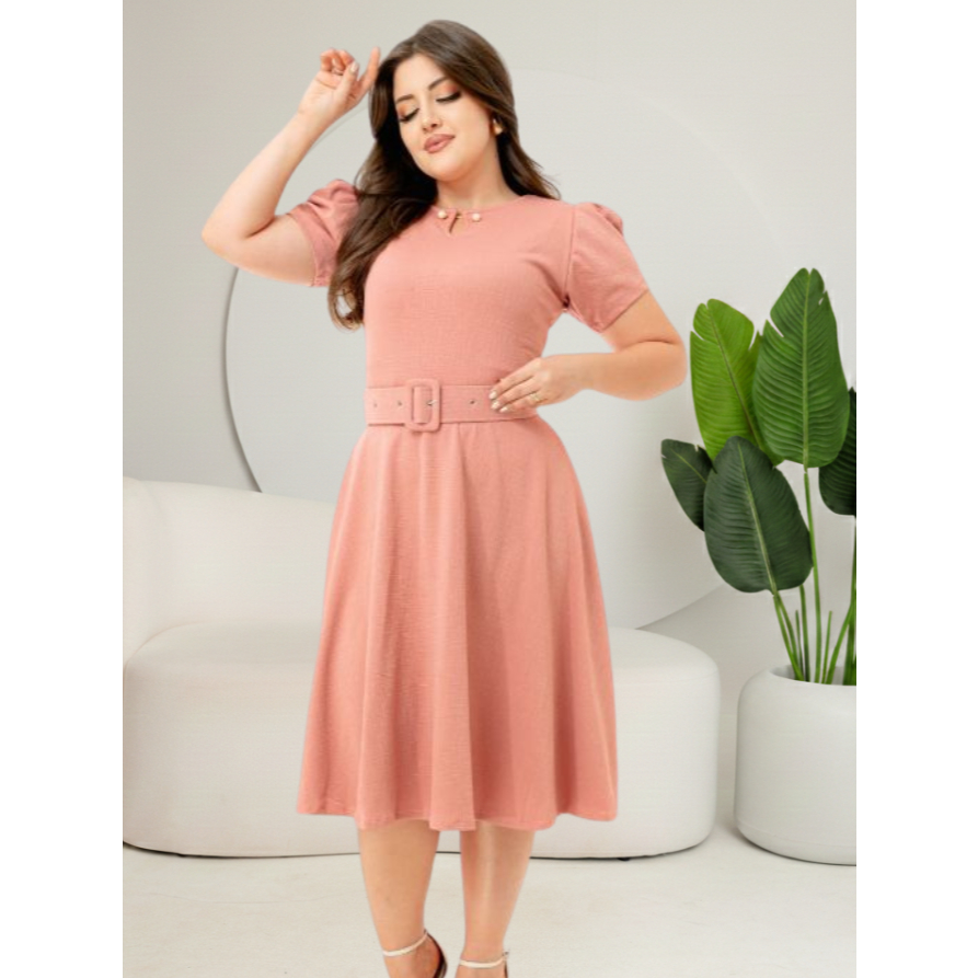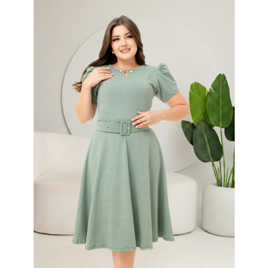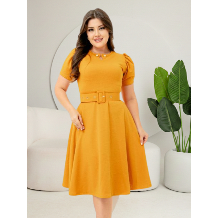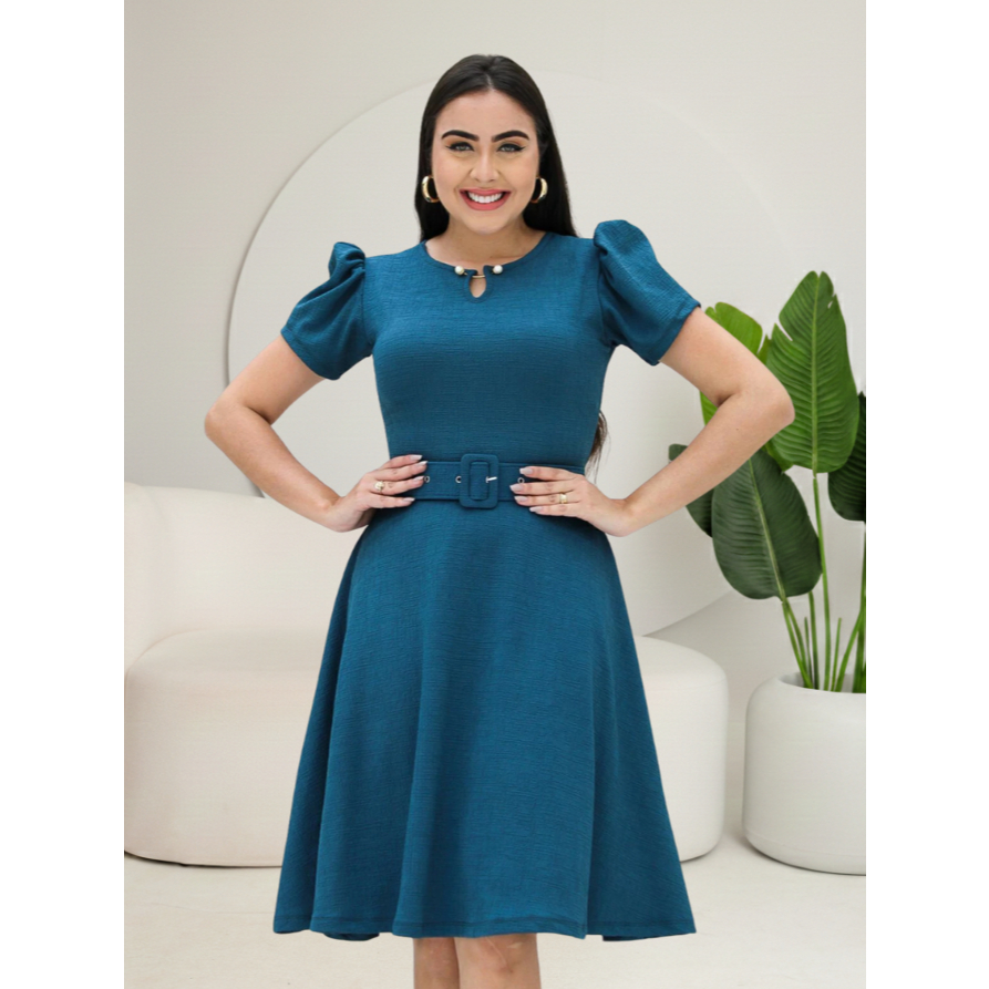 Vestido Godê Pérola Com Manga Princesa Perfeito Acompanha Cinto Lindas Cores