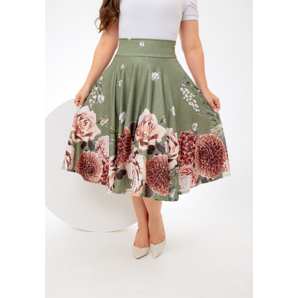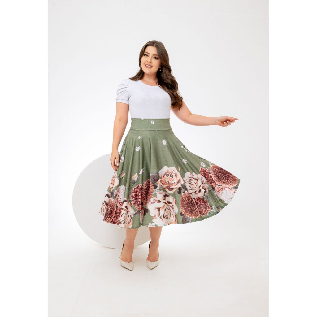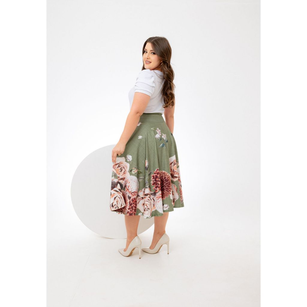 Saia Midi Verde Musgo Florida Godê Moda Feminina P ao G3 Lançamento Suplex Digital