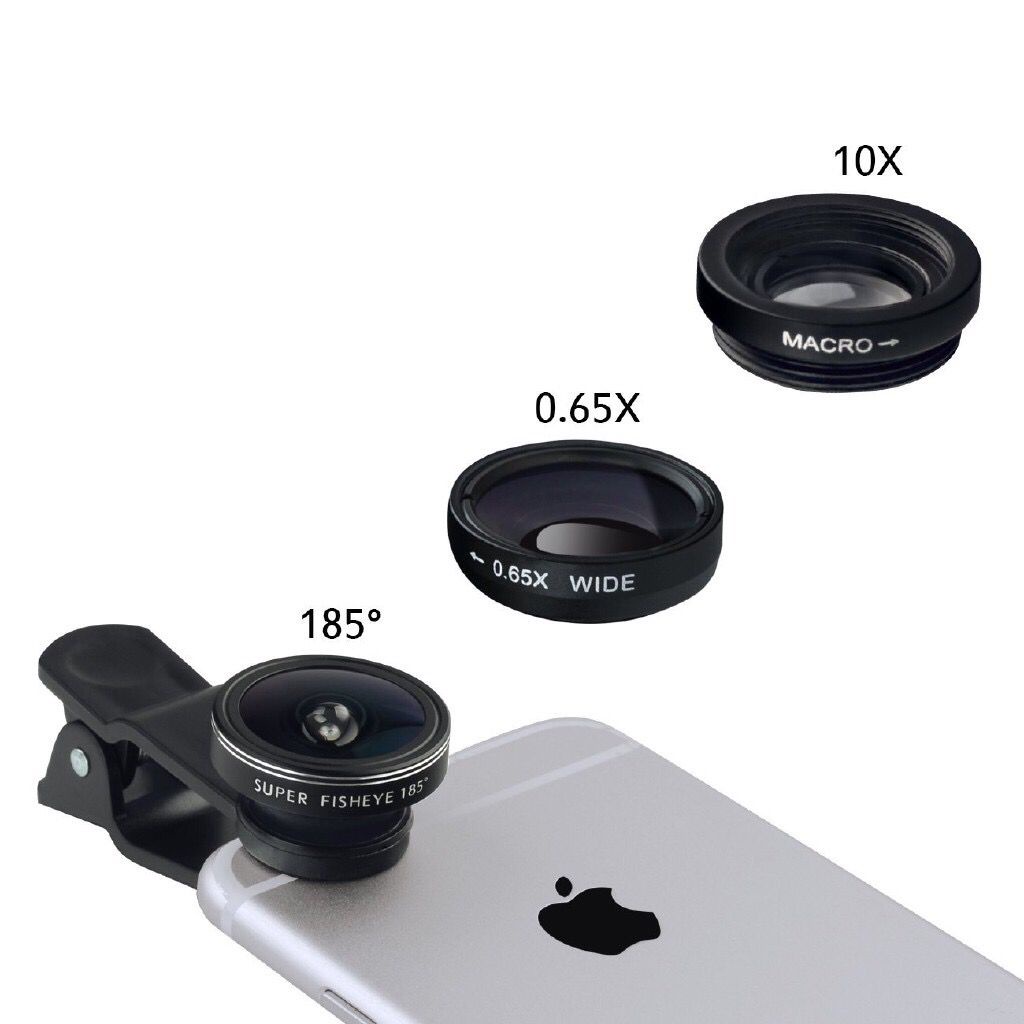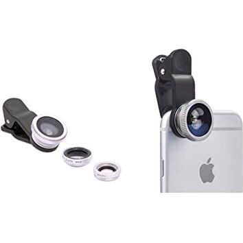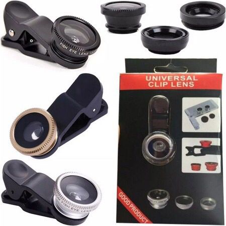 Kit 3 em 1 Lentes Fish Eye Macro Wide Celular Smartphone Celular - Universal Clip Lens