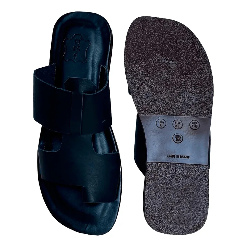 Rasteira feminino chinelo slide de couro legítimo rasteirinha confortável verão casual elegante HMS