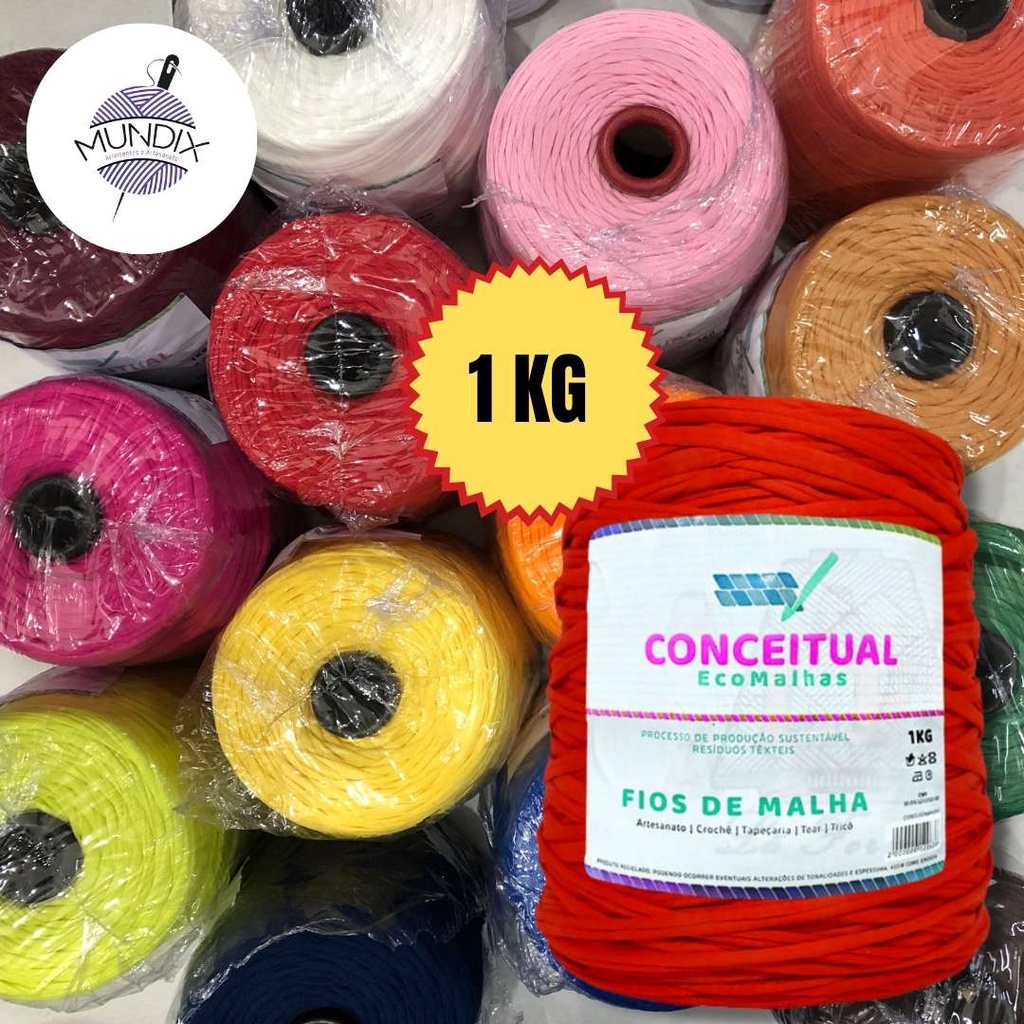 Fio de malha 1kg Residual / Reciclado - Conceitual p/ Crochê, Tricô, Bolsas, Cestos, Tapetes