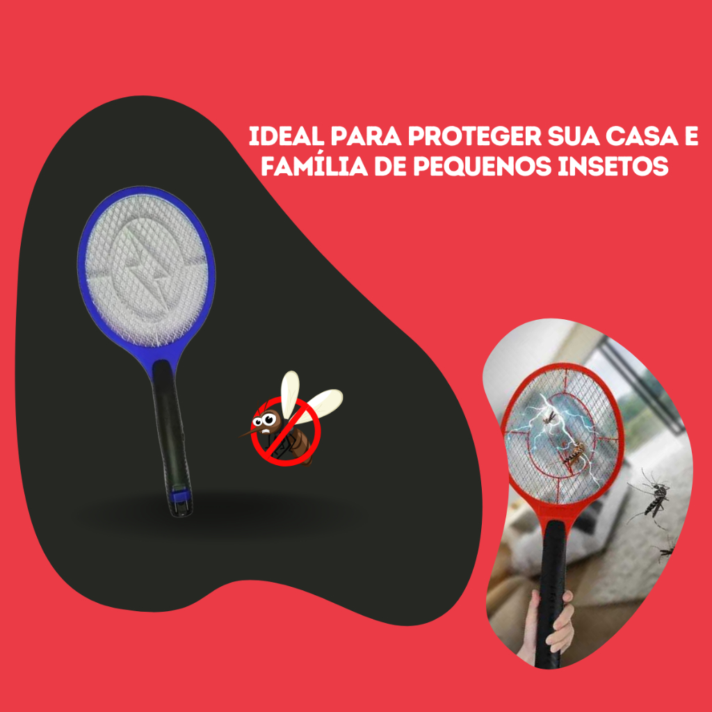 Raquete Elétrica Mosquito Baratas e Insetos Recarregável Bivolt