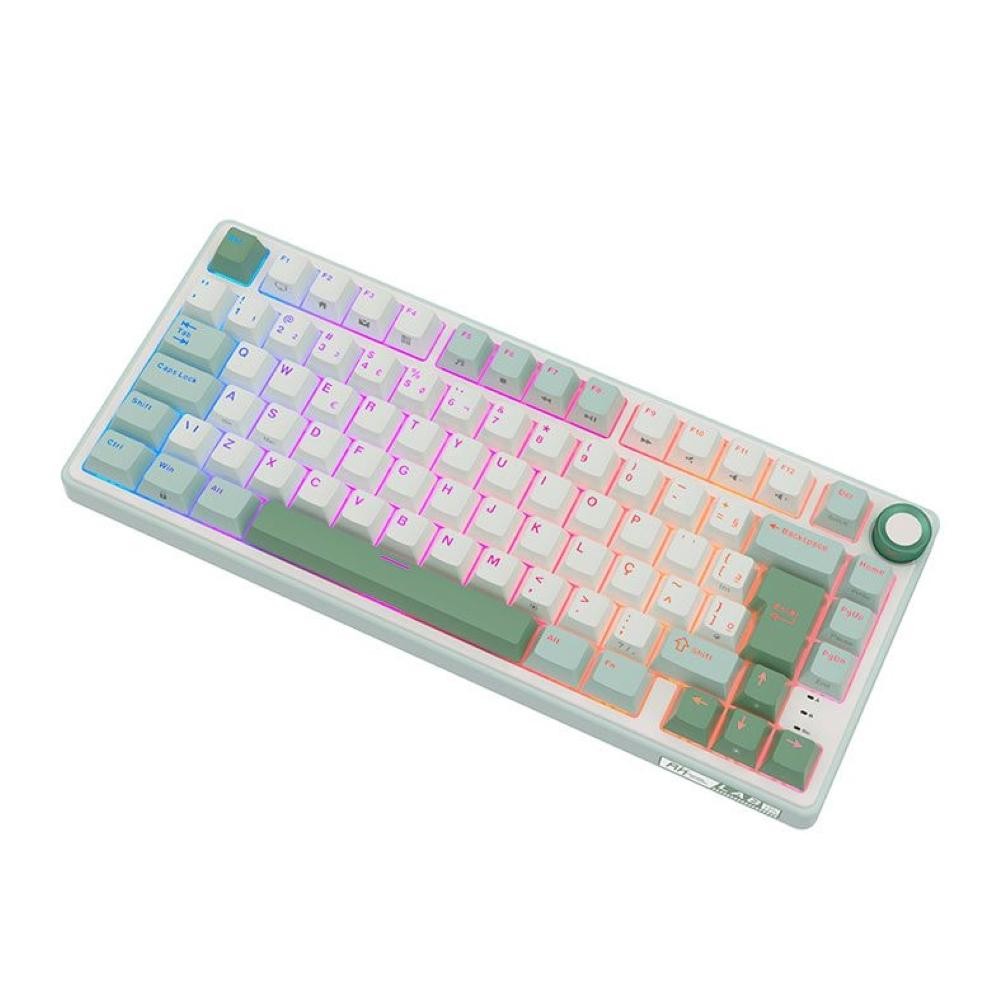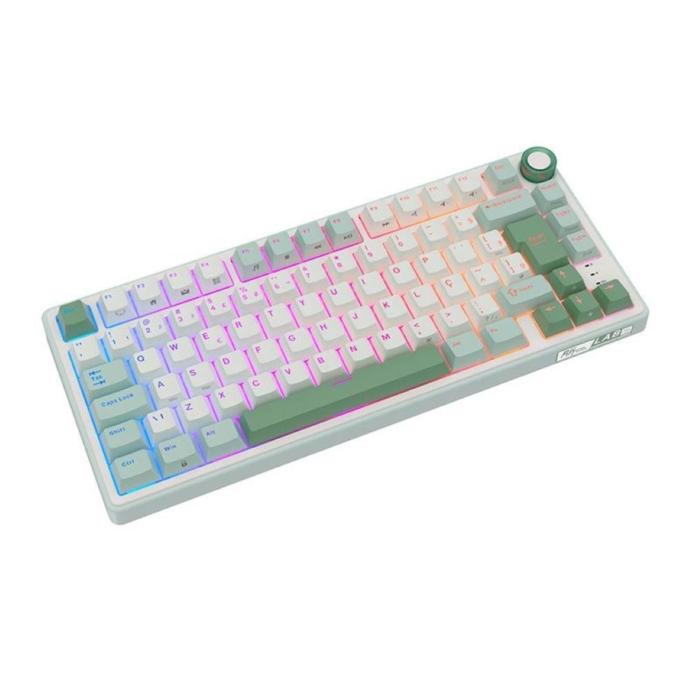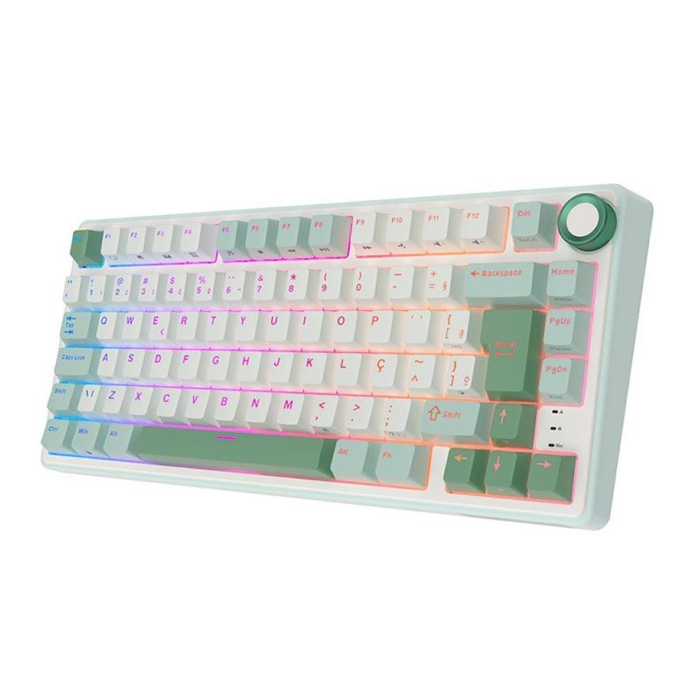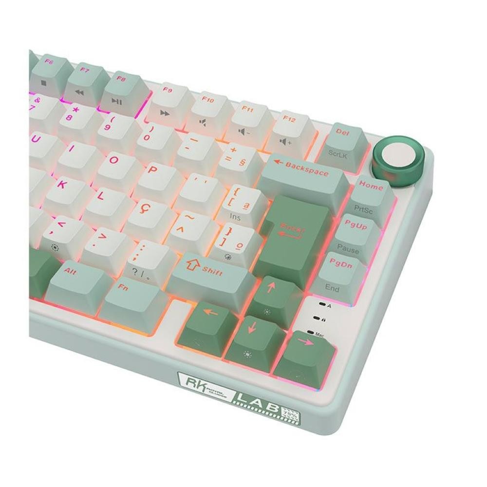 Teclado Mecanico GamerRoyalKludgeRKR75,QMK/VIA,RGB,ABNT2,Switch Brown,Branco e Ciano,RKR75-SS-BW-POR