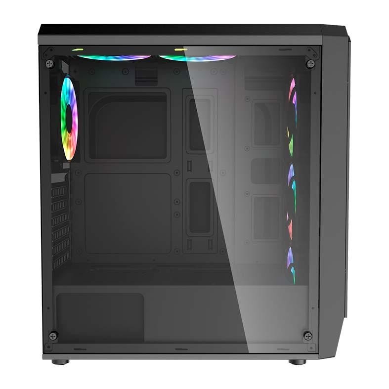 GABINETE GAMER AIGO WATER SQUARE 5 PRETO LATERAL DE VIDRO TEMPERADO, AIGO-WATER-SQUARE-5