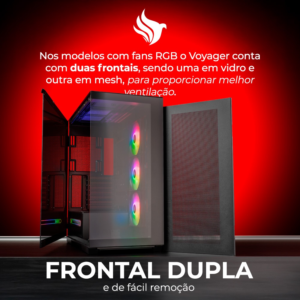 Gabinete Gamer Pichau Voyager One,ARGB,FTower,L.de Vidro,Com 3 Fans e 2 frontais,Preto,PG-VY1-BK-3F