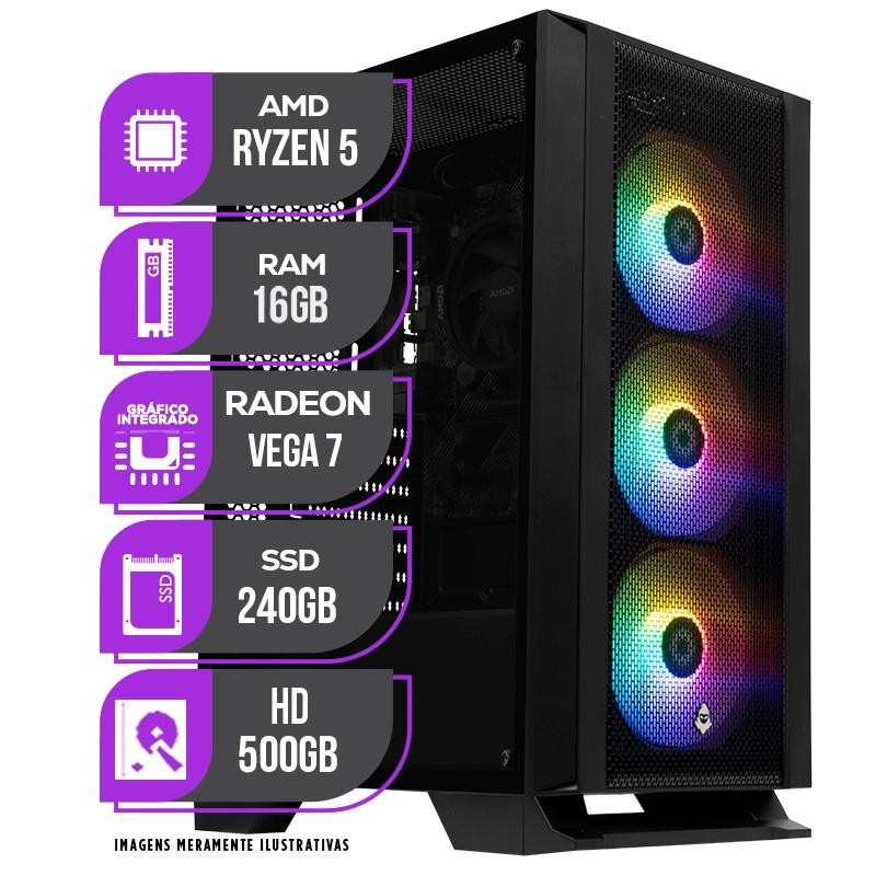 PC Gamer Mancer, AMD RYZEN 5 4600G, Vega 7, 16GB DDR4, SSD 240GB + HD 500GB