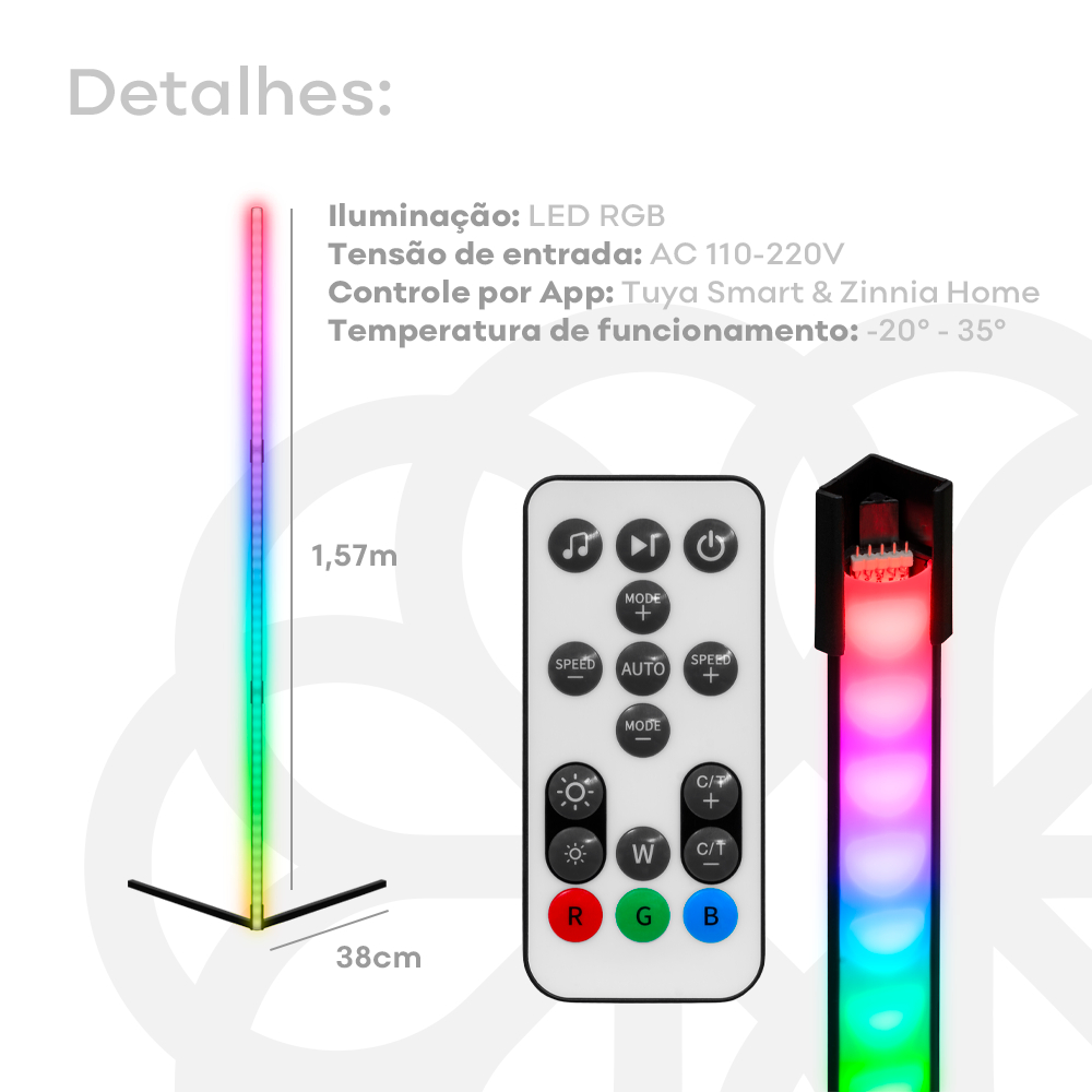 Luminária Zinnia Cintila V2, RGB, Preto, ZNS-ZCTLAV2-BL01