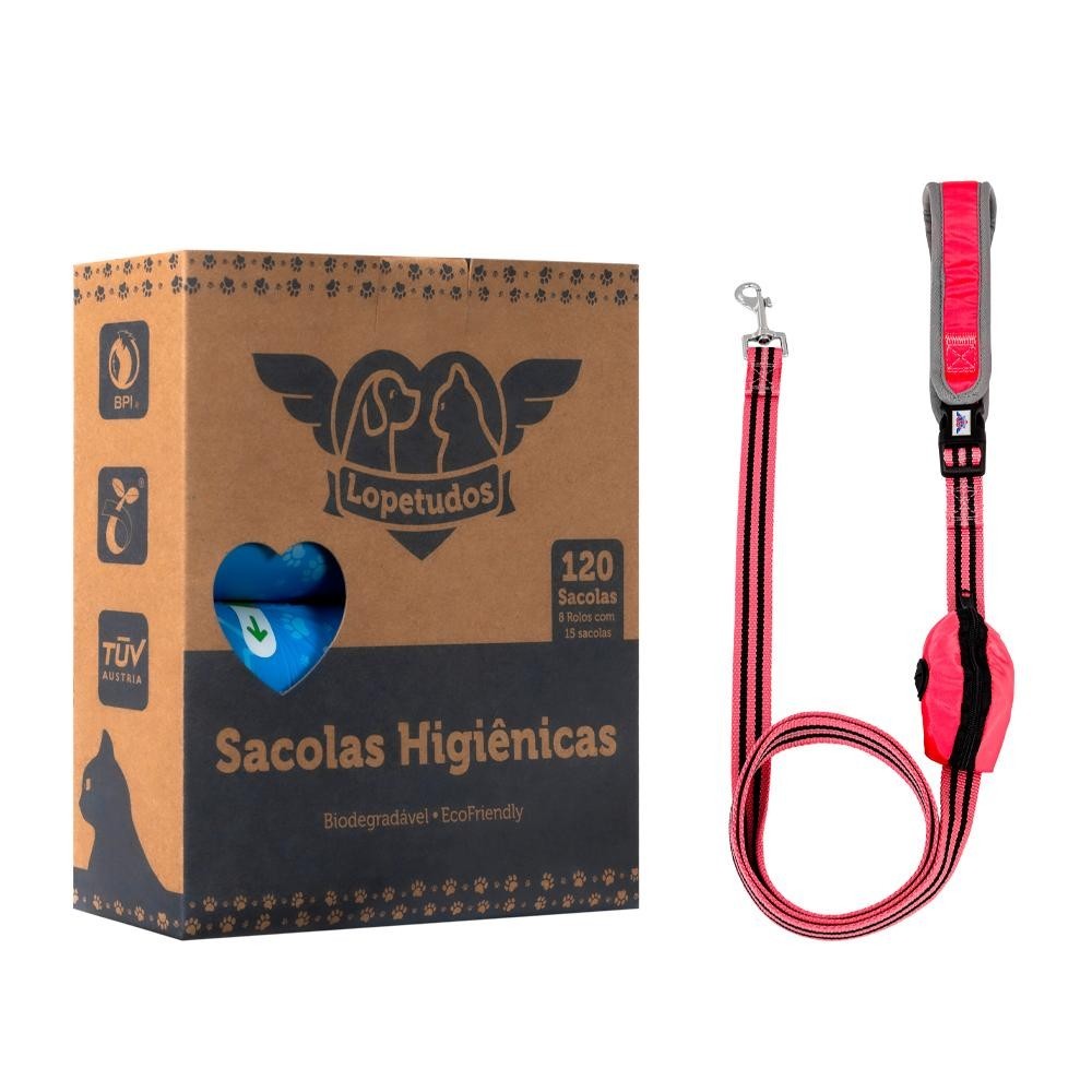 KIT PET PASSEIO - SmoothRide1 1,8m rosa , sacolas 8 rolos