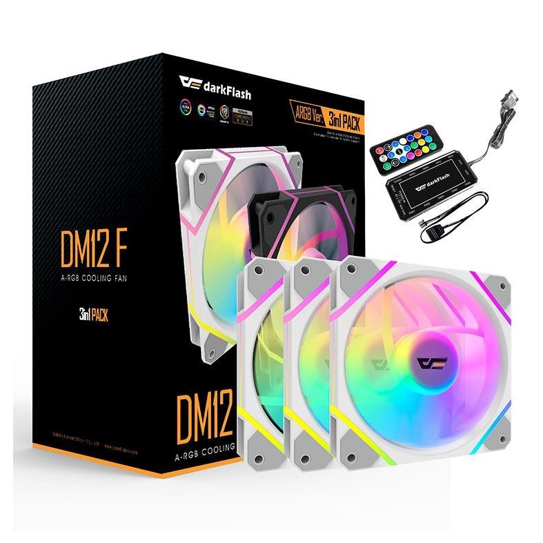Kit Ventoinhas Aigo Darkflash DM12 F, ARGB, 3x120mm, Branco, DF-DM12F3IN1-W-PH1