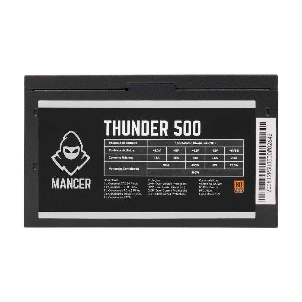 Fonte Mancer Thunder 500W, 80 Plus Bronze, MCR-THR500-BL01-OEM