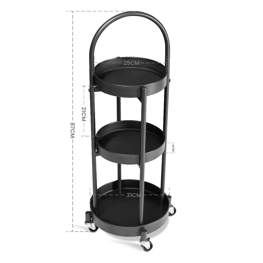Carrinho Organizador Multiuso Zinnia Allure Curve ZO4, Preto, ZNC-ALLC-BL01