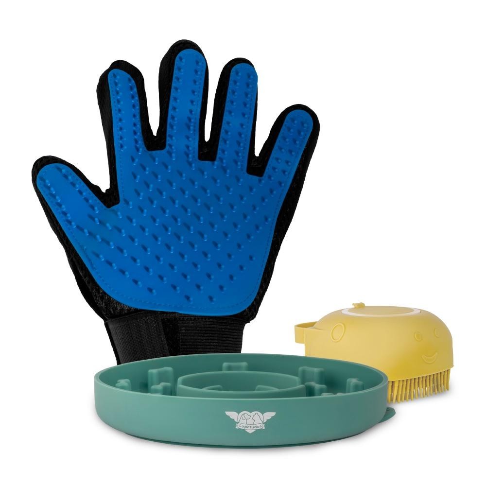 KIT PET LIMPEZA - SlowFeed1, BubbleBath1 Amarelo, HairFree1 Mao Esquerda