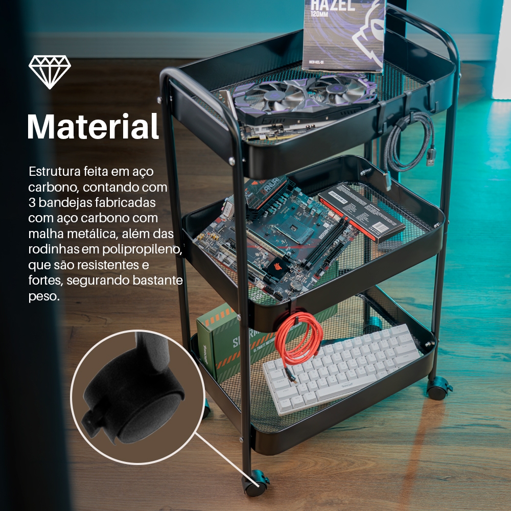 Carrinho Organizador Zinnia Allure ZO2 Multiuso Com Rodinhas, Preto, ZNC-ALLR-BK02