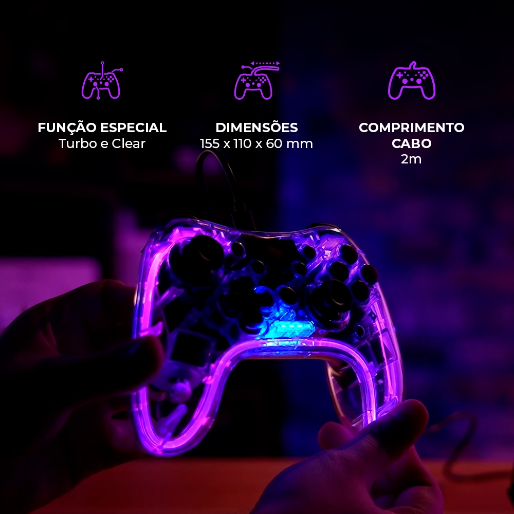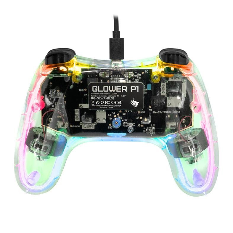 Controle Pichau Glower P1, PC/Switch/PS3/Android, Transparente, PG-GLWP-BL01