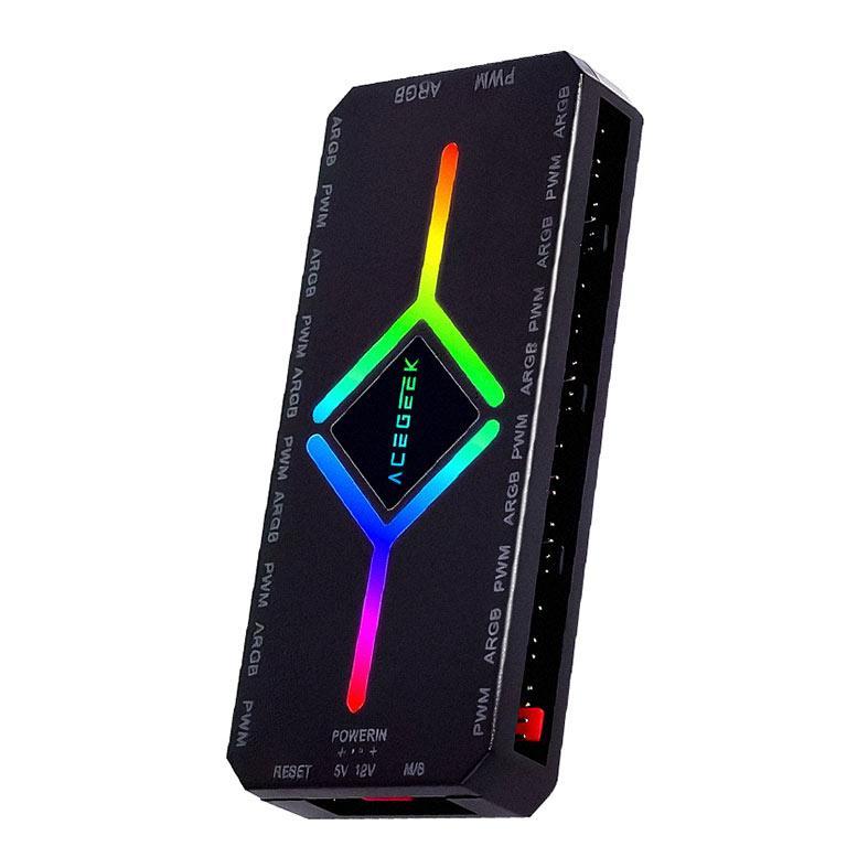 Controladora Acegeek Hub10, 10 Portas ARGB, 10 Portas PWM, Preto, AG-HUB10-BK