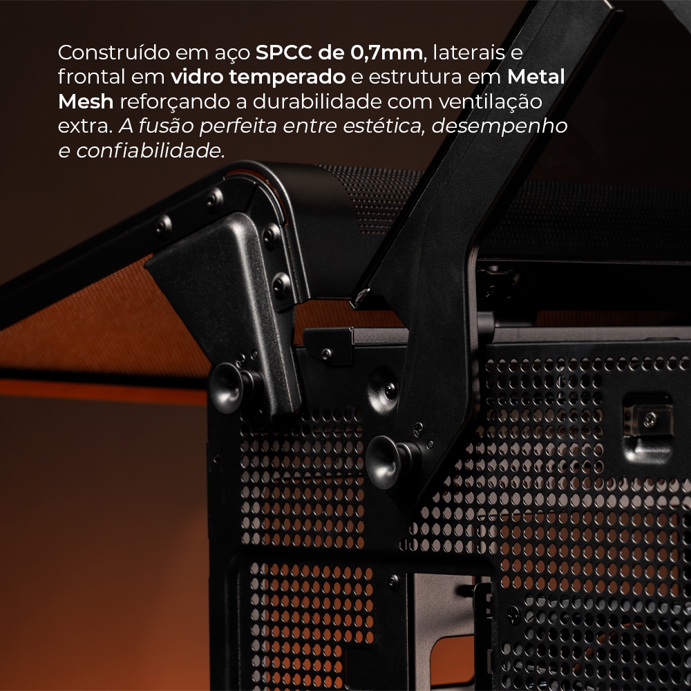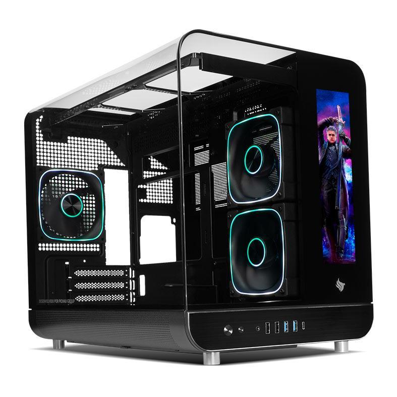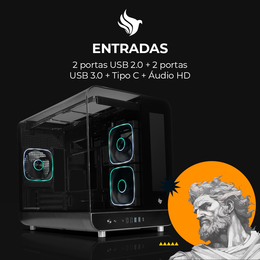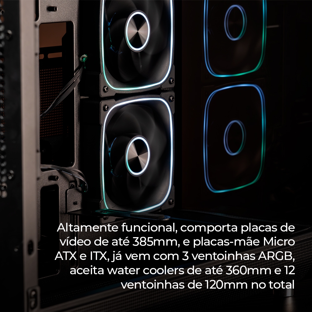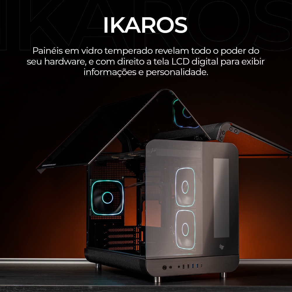Gabinete Gamer Pichau Ikaros ARGB Mini-Tower Tela LCD Lateral de Vidro Com 3 Fans Preto, PG-IKO-BK3L