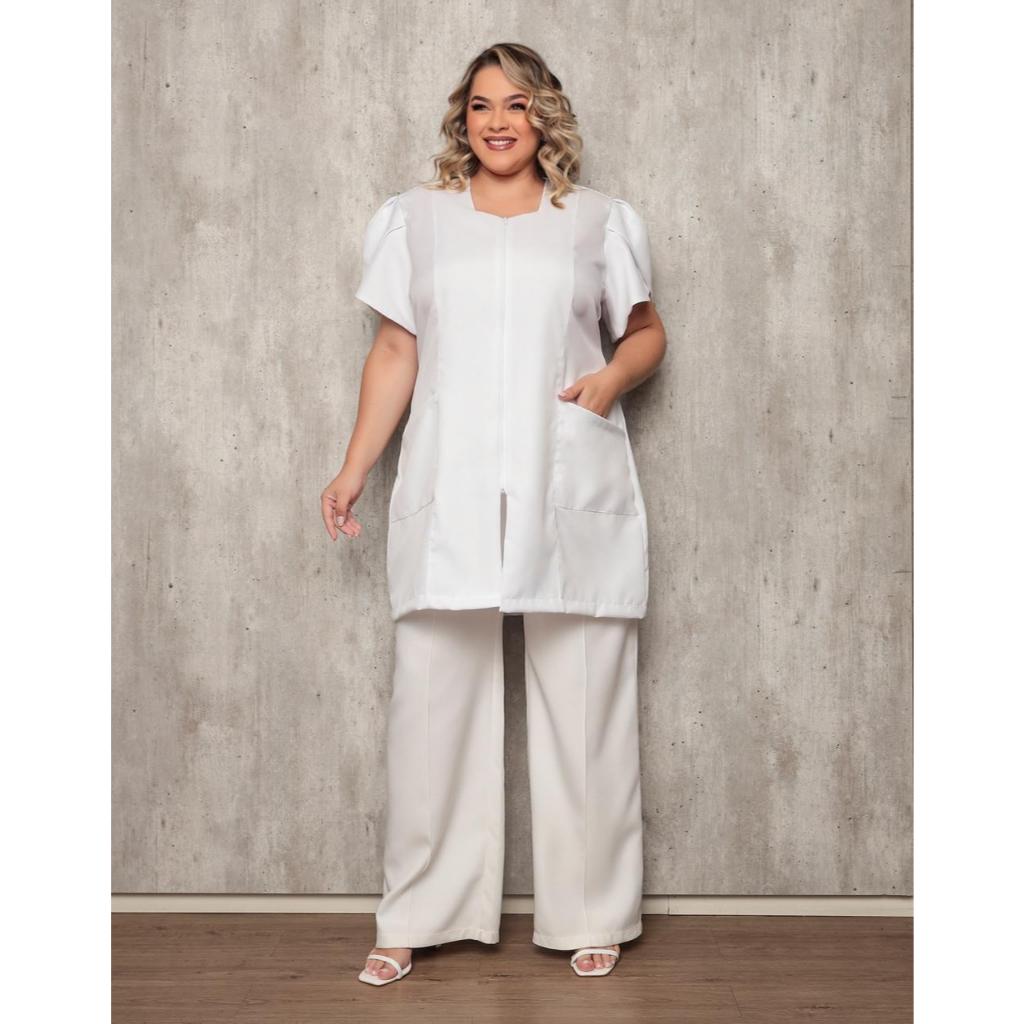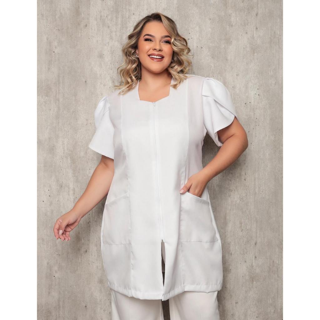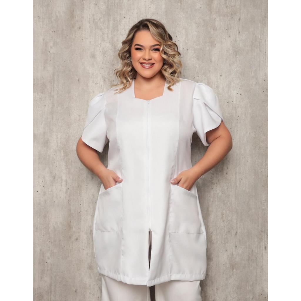 Jaleco Manga Curta Bufante com Zíper Aurora Branco Plus Size Gardenia Jalecos