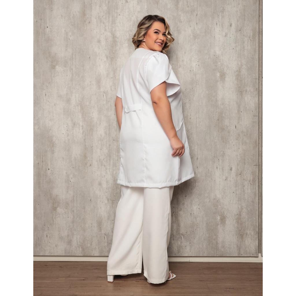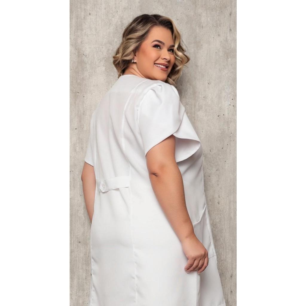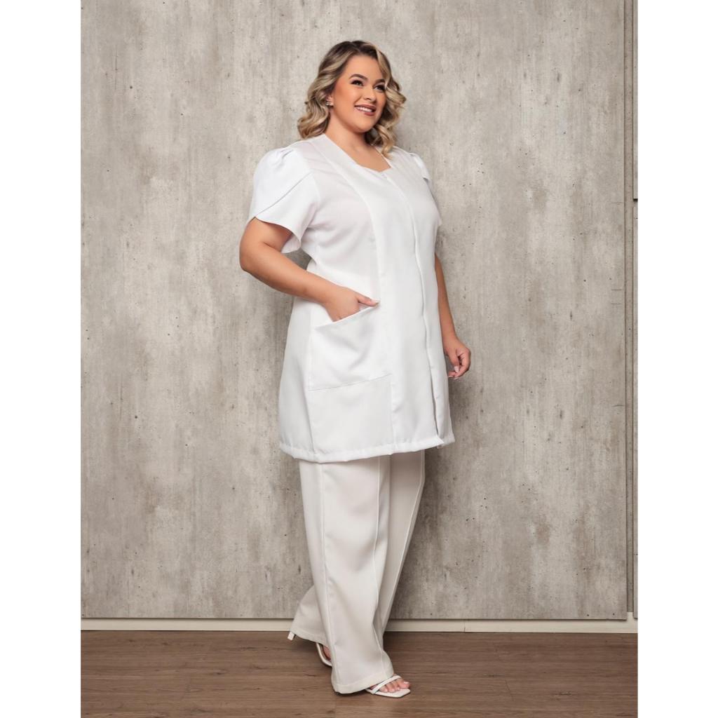 Jaleco Manga Curta Bufante com Zíper Aurora Branco Plus Size Gardenia Jalecos