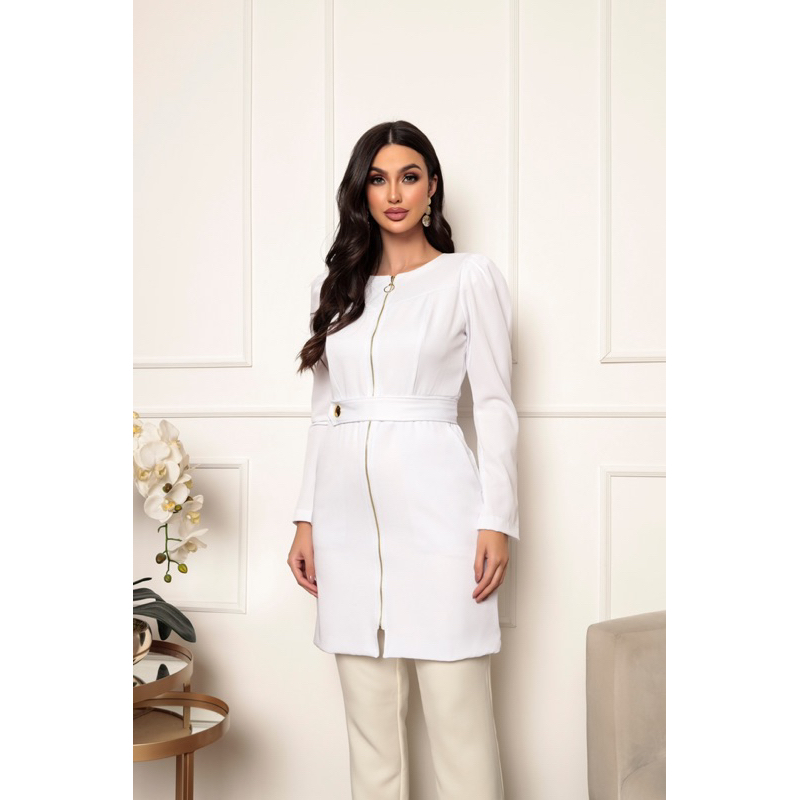 Jaleco Feminino Two Way C/ Zíper Manga Bufante Forro Cetim Branco Charm Gardenia Jalecos