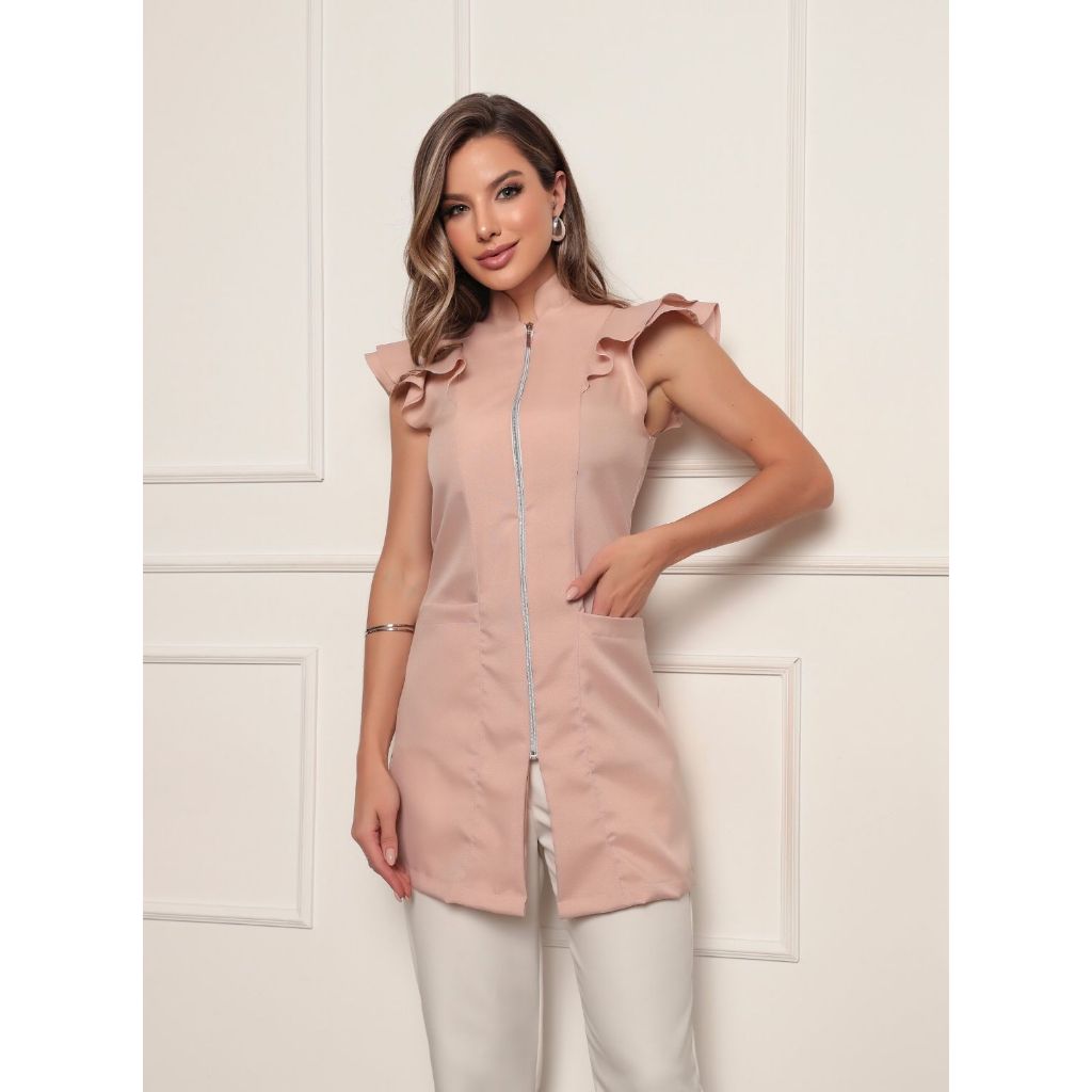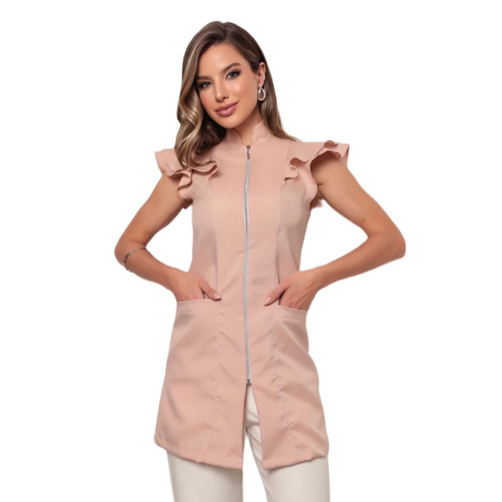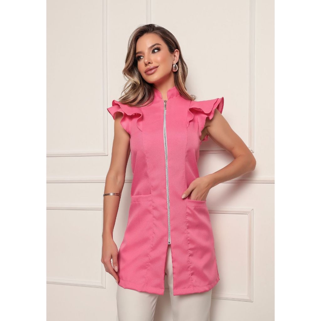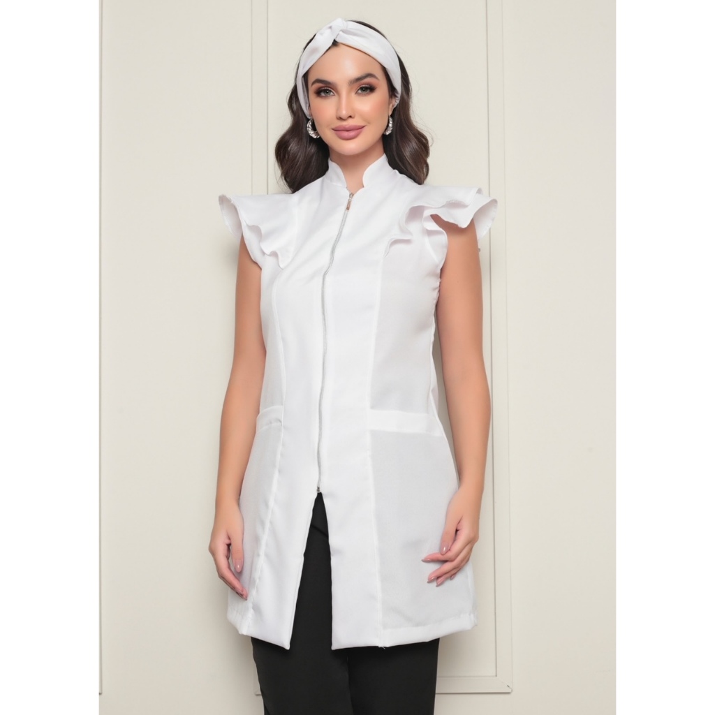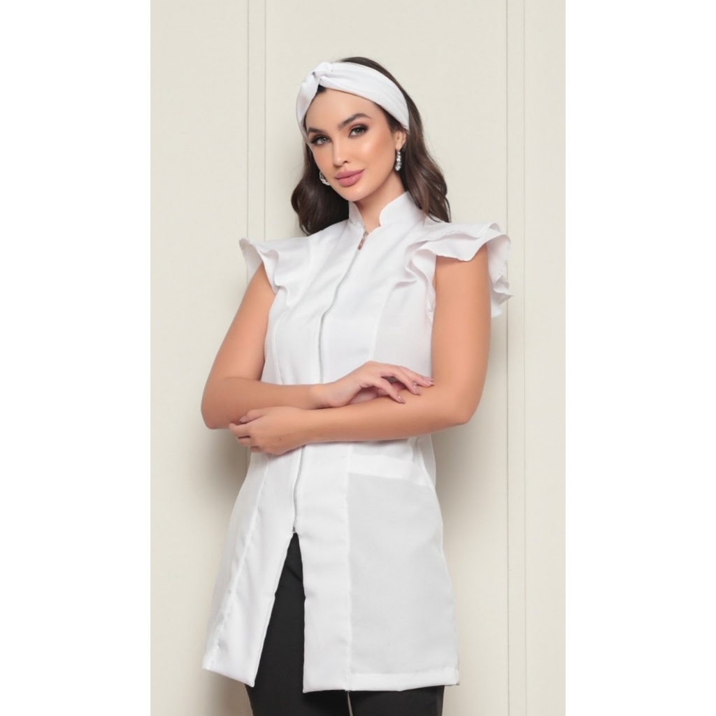 Jaleco Feminino Manga Curta Valentina Oxford Várias Cores Gardenia Jalecos