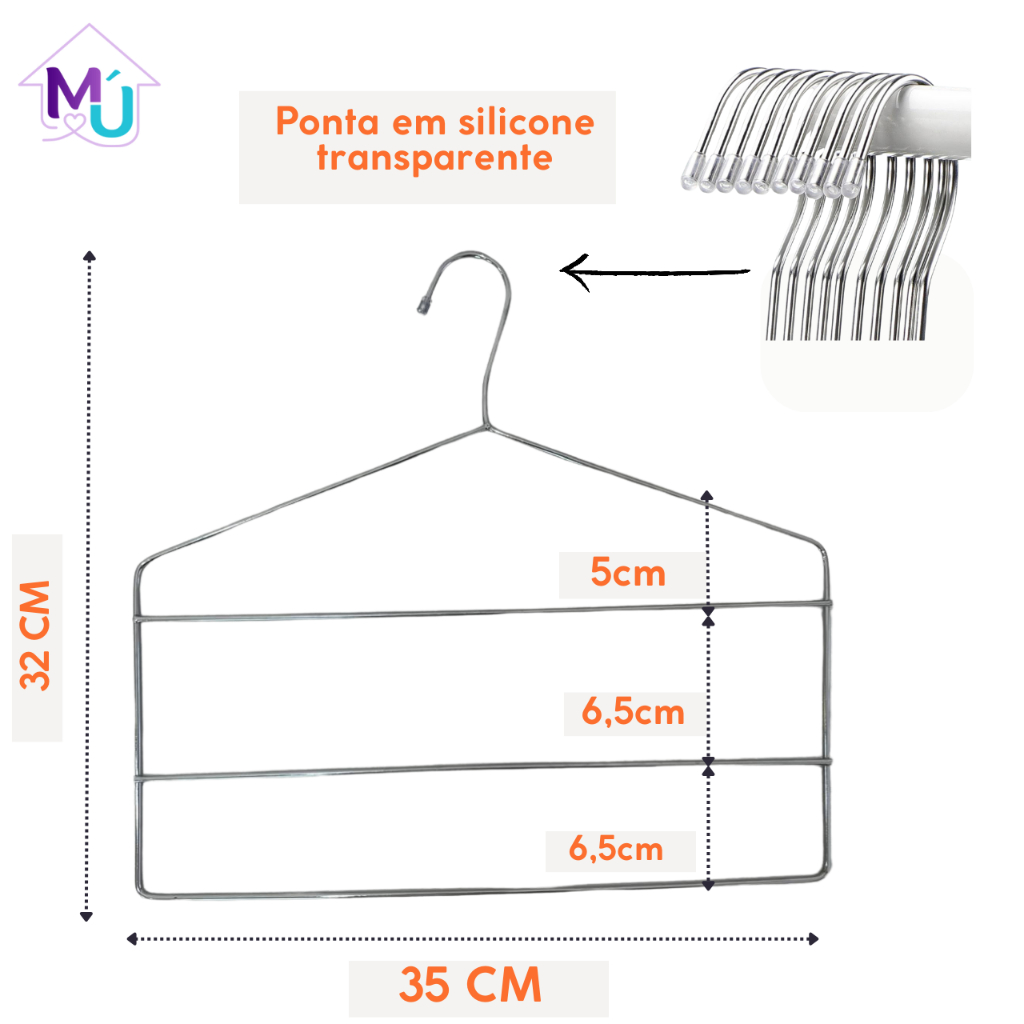 Cabides Calça Triplo Aço Cromado Metal Calceiro Adulto Cabide Criança Resistente Promoção