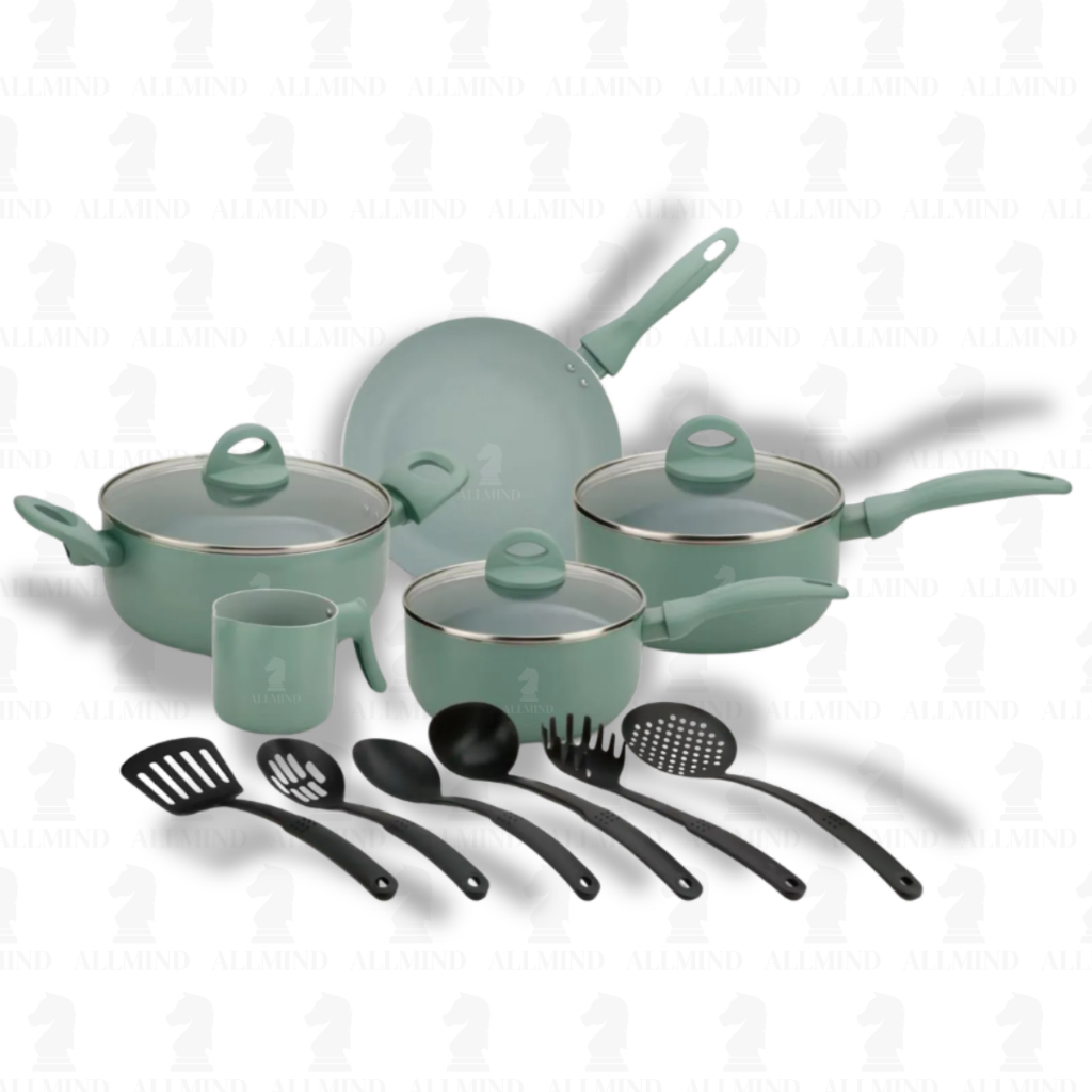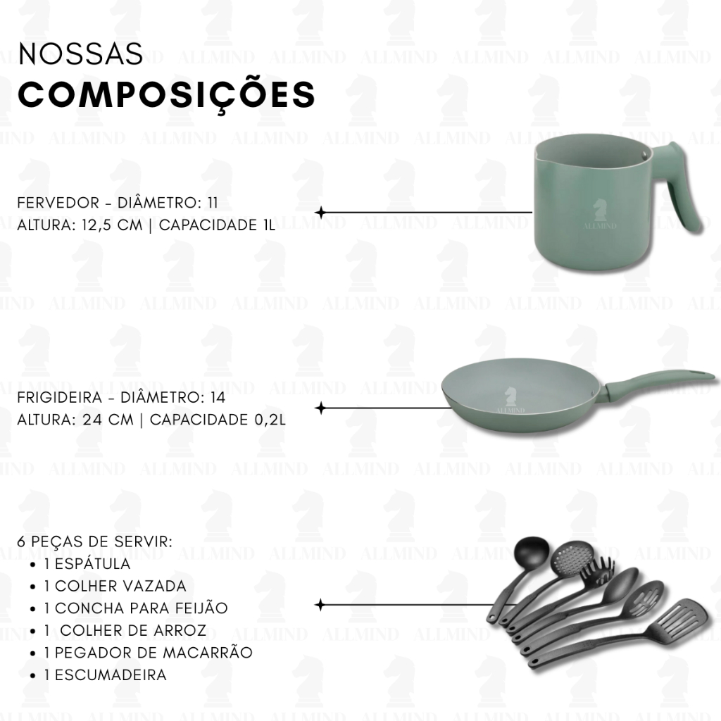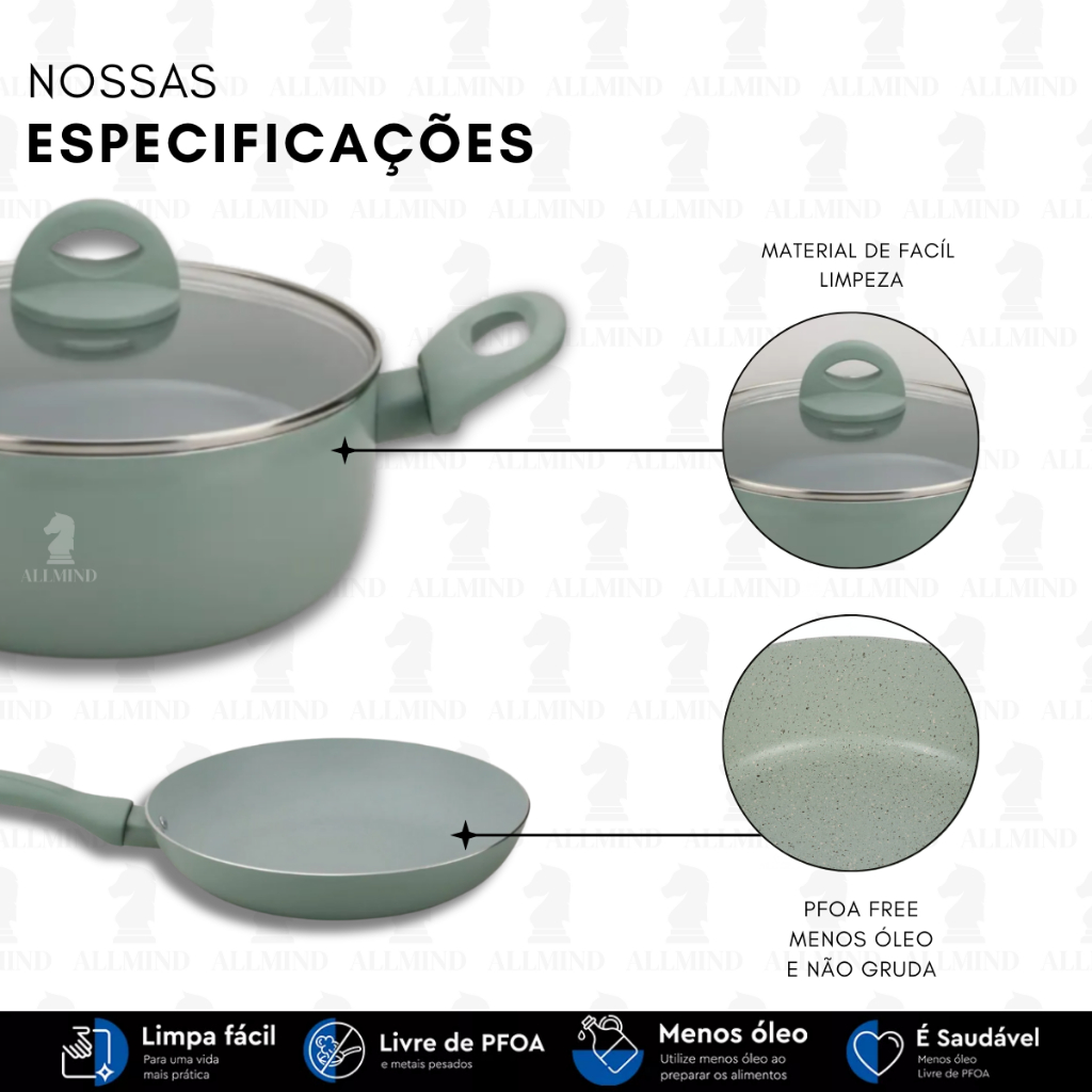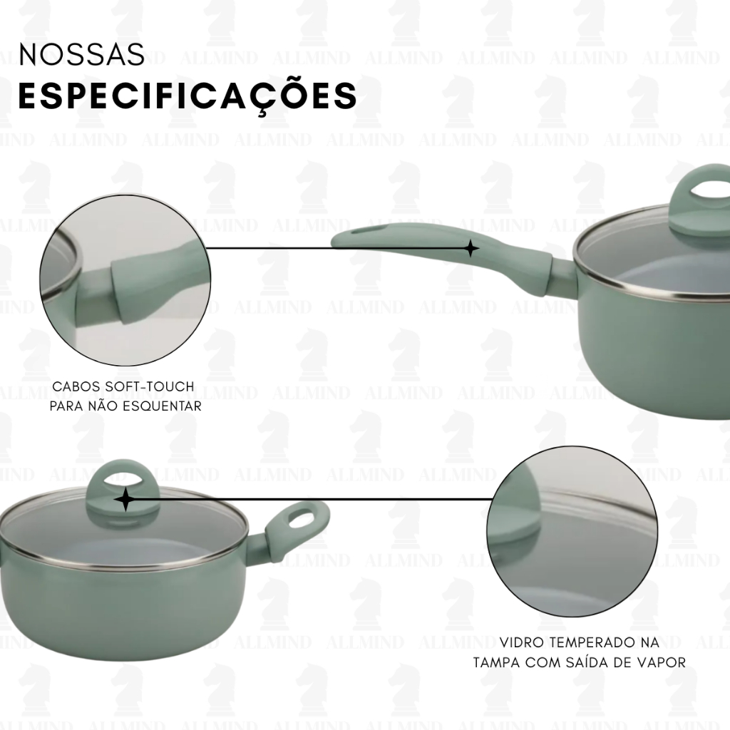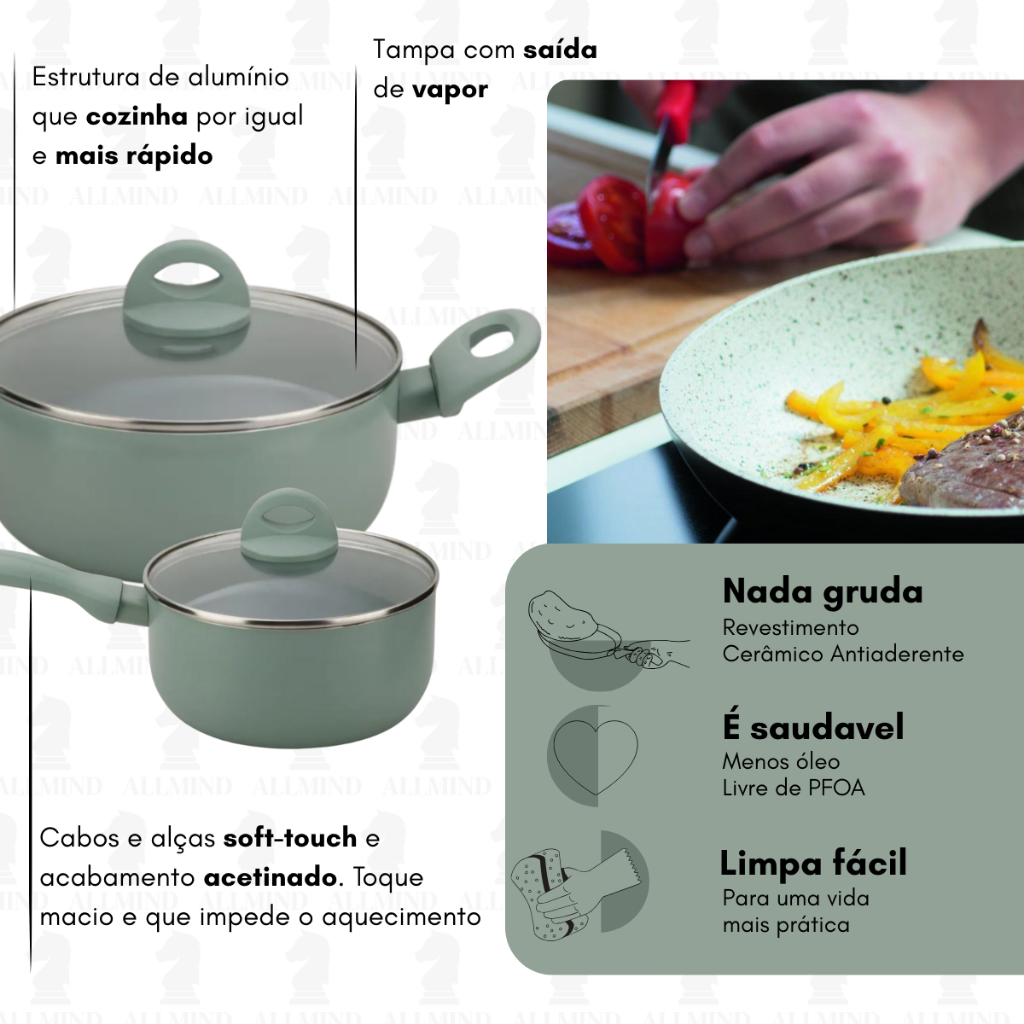 Jogo De Panelas Indução Antiaderente De Ceramica Marmore Verde 14 Peças Jogo Acabamento de Teflon