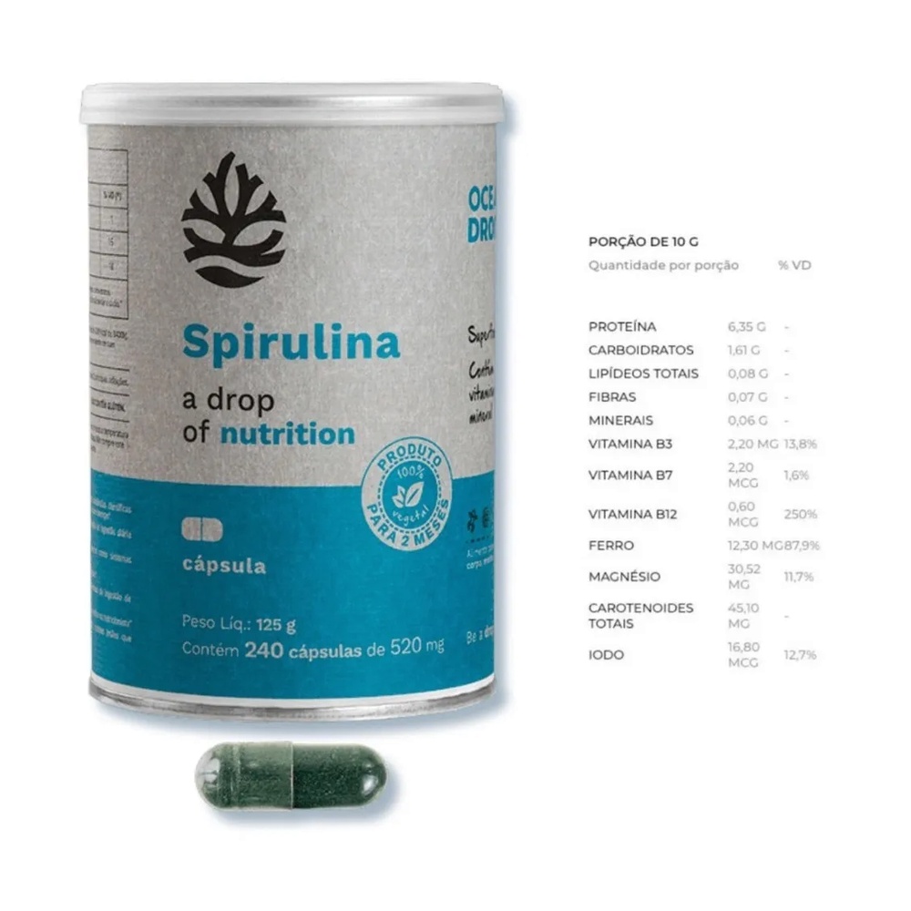 Spirulina 100% Natural 520mg 240 Cápsulas - Ocean Drop