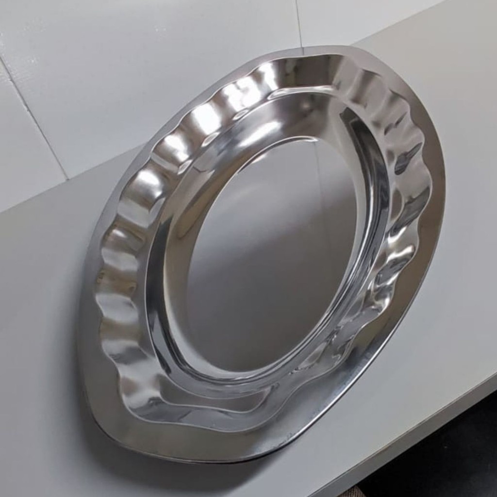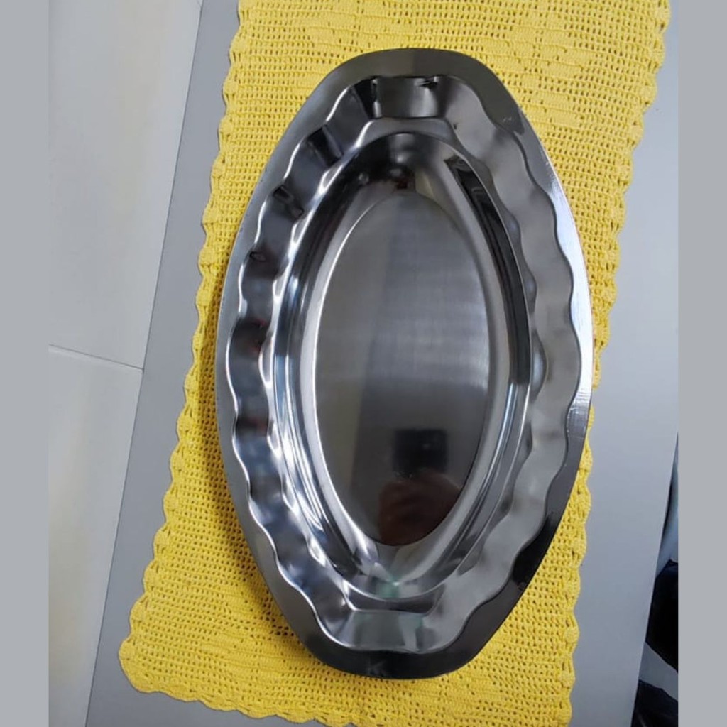 Baixela Travessa Oval Decorada Aço Inox 60 cm Reforçado