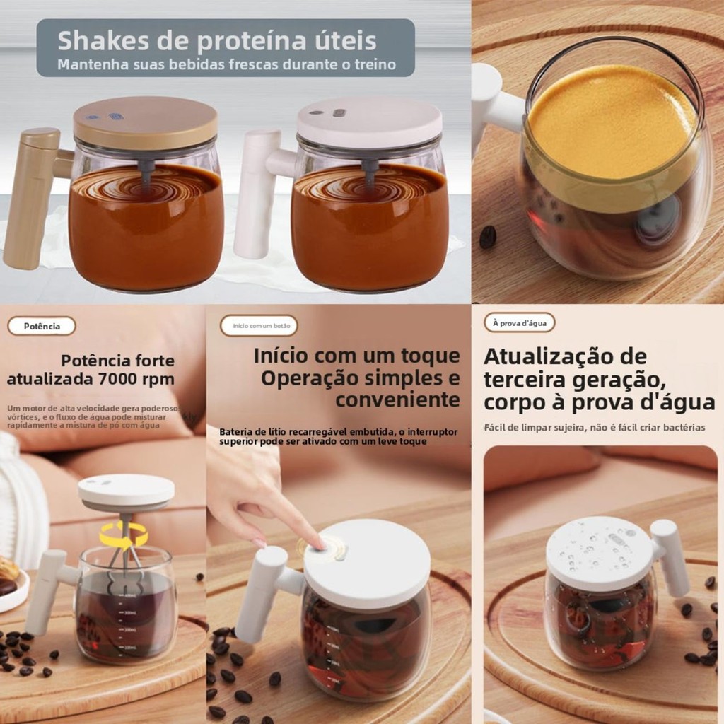 Caneca Mixer Automático Misturador Recarregável USB 500ml