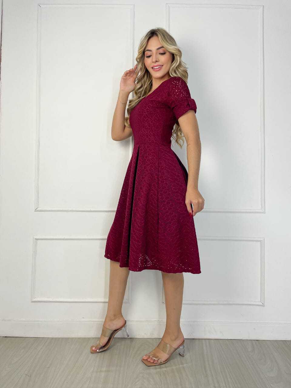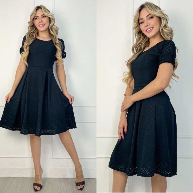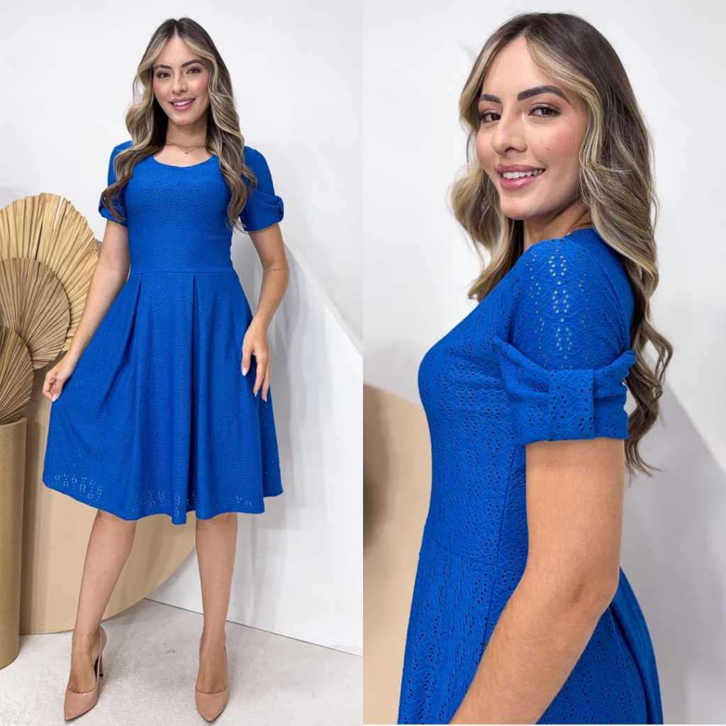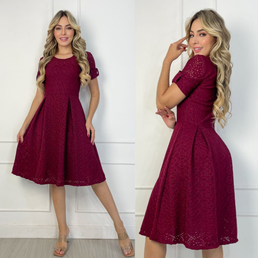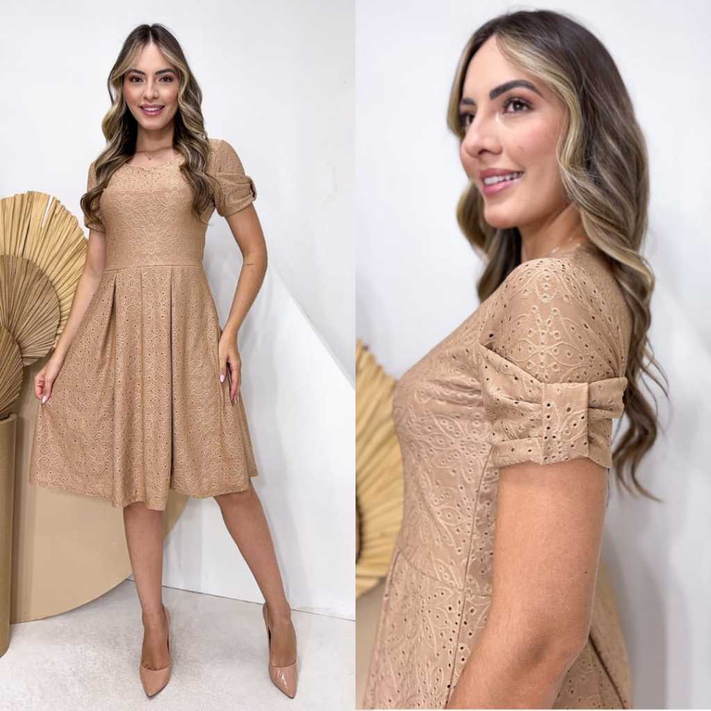 Vestido Midi Feminino Forrado em Laise de Malha Elegante e Confortável Moda Evangélica | Modelo Luna