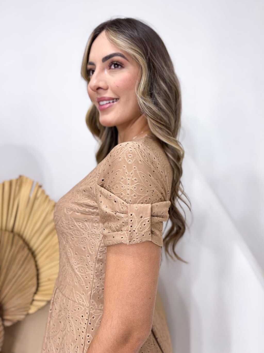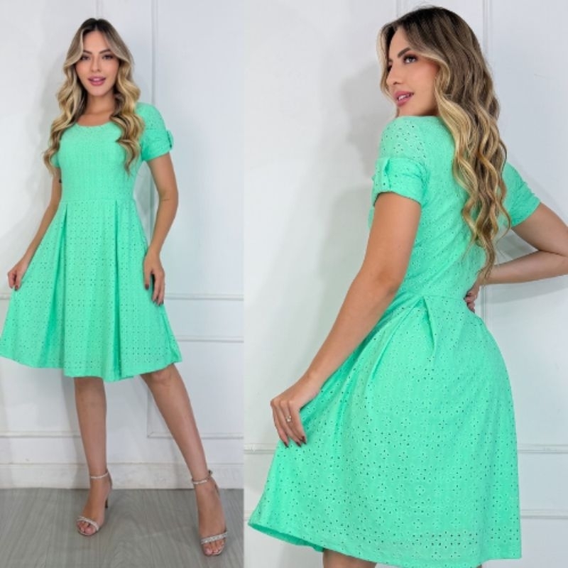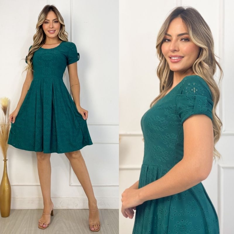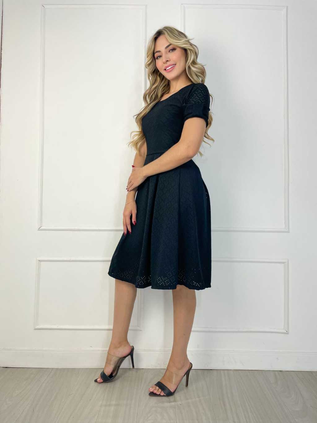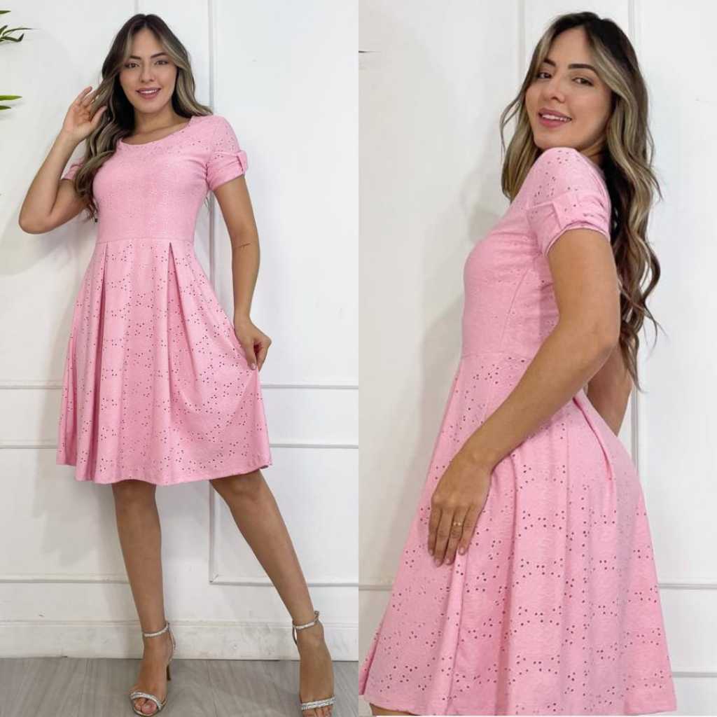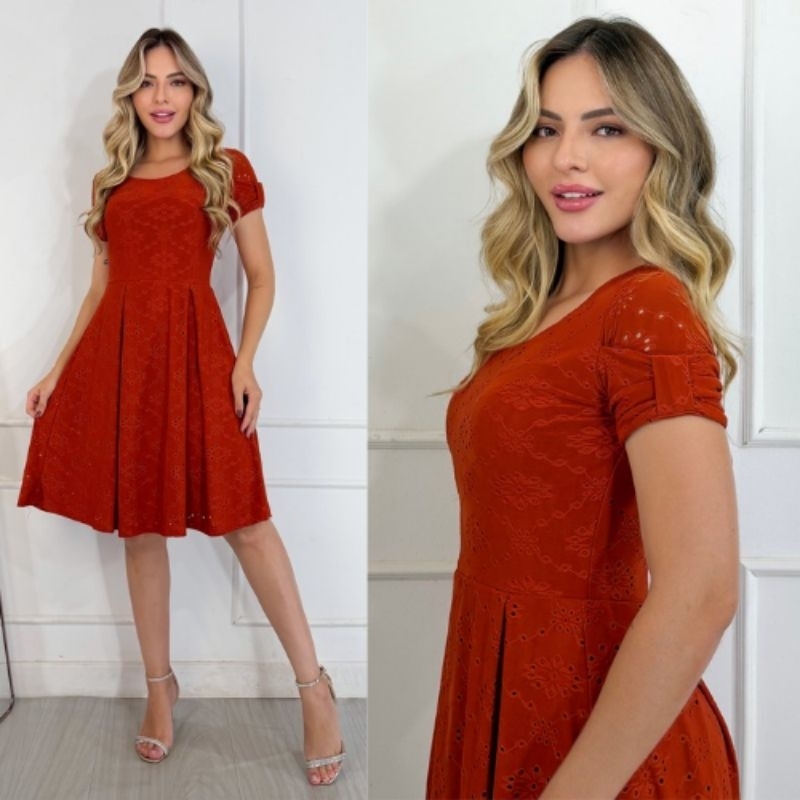 Vestido Midi Feminino Forrado em Laise de Malha Elegante e Confortável Moda Evangélica | Modelo Luna