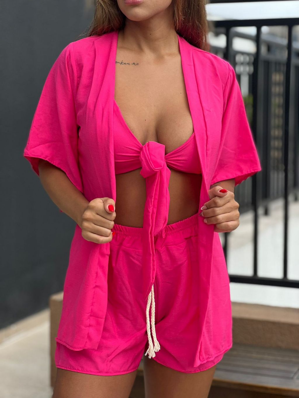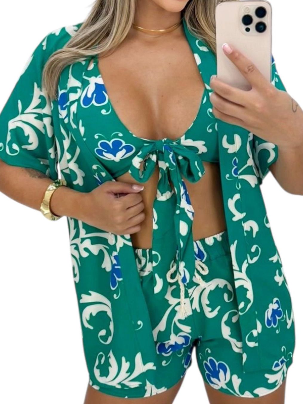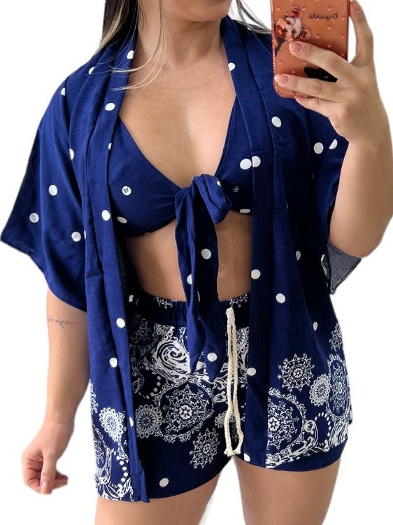 Cconjunto kimono Feminino Short Top Blusa Verão Praia Piscina