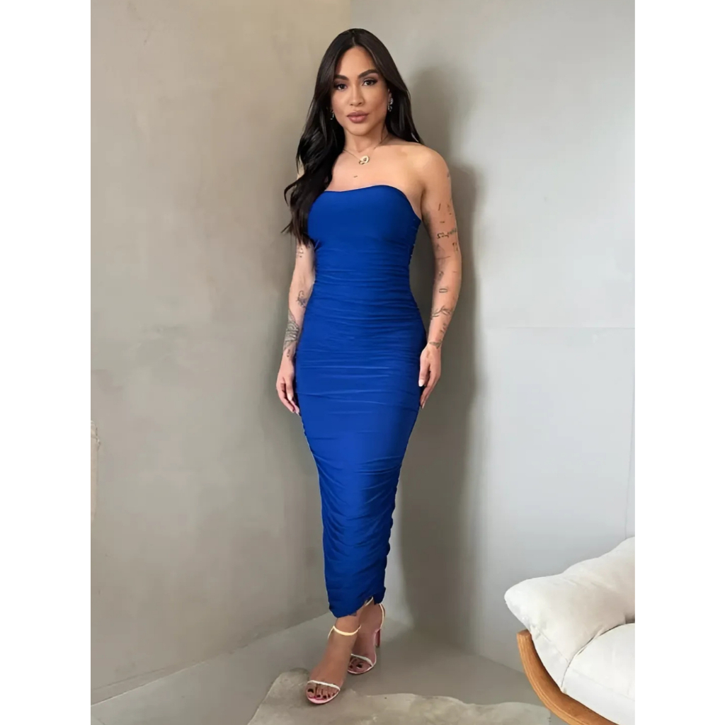 Vestido feminino Midi Tomara Que Caia Franzido nas Laterais Moda Gringa casamento Elegante festa Branco