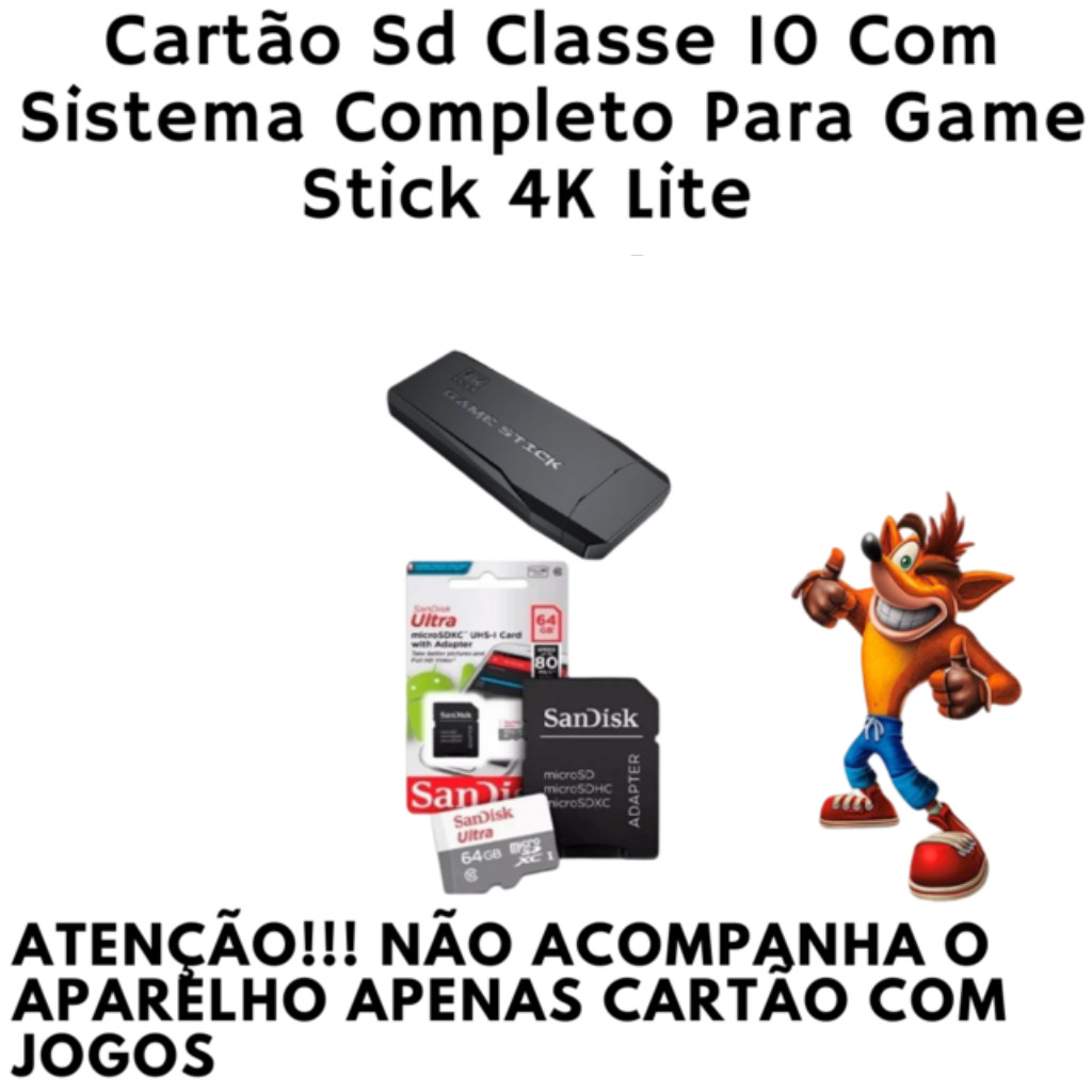 Cartão D Memória Para Game Stick 4K Lite 32GB/ 64Gb Com Sistema Completo(Atualizado)