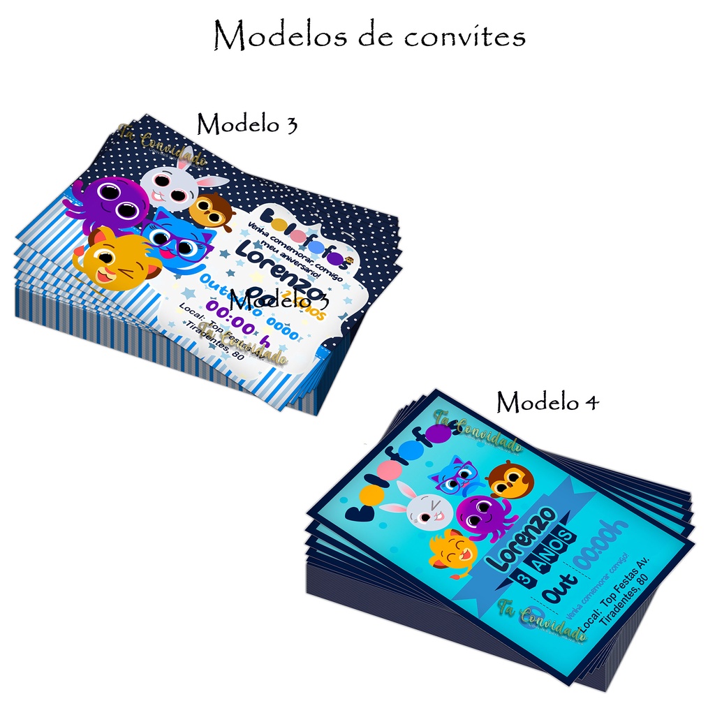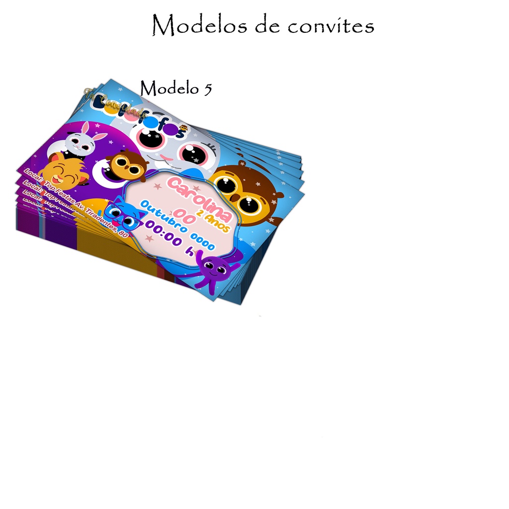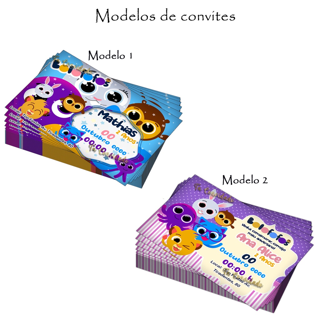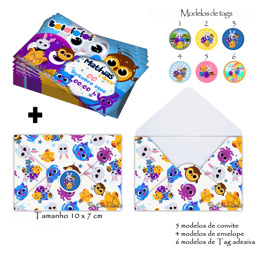 Convites Infantil Tema Bolofofos ( P/ Meninas e Meninos ) 10x7cm para Aniversário + Envelope + Tag