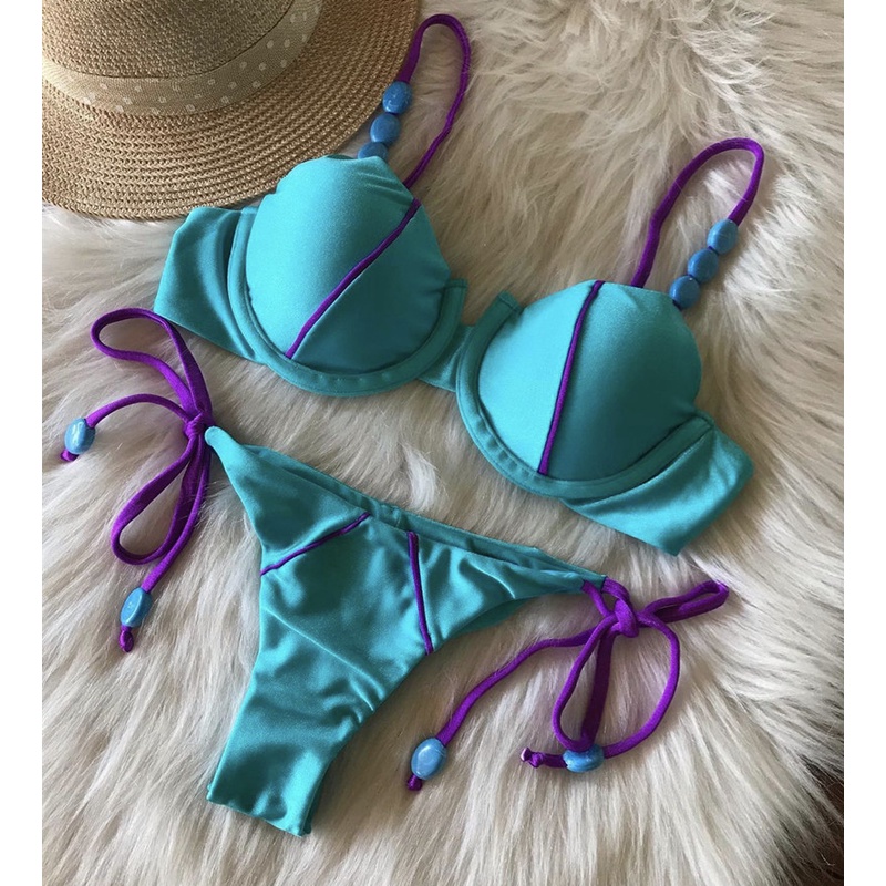 Biquini Feminino de cor sólida com alça ajustável maio Maio Feminino Praia