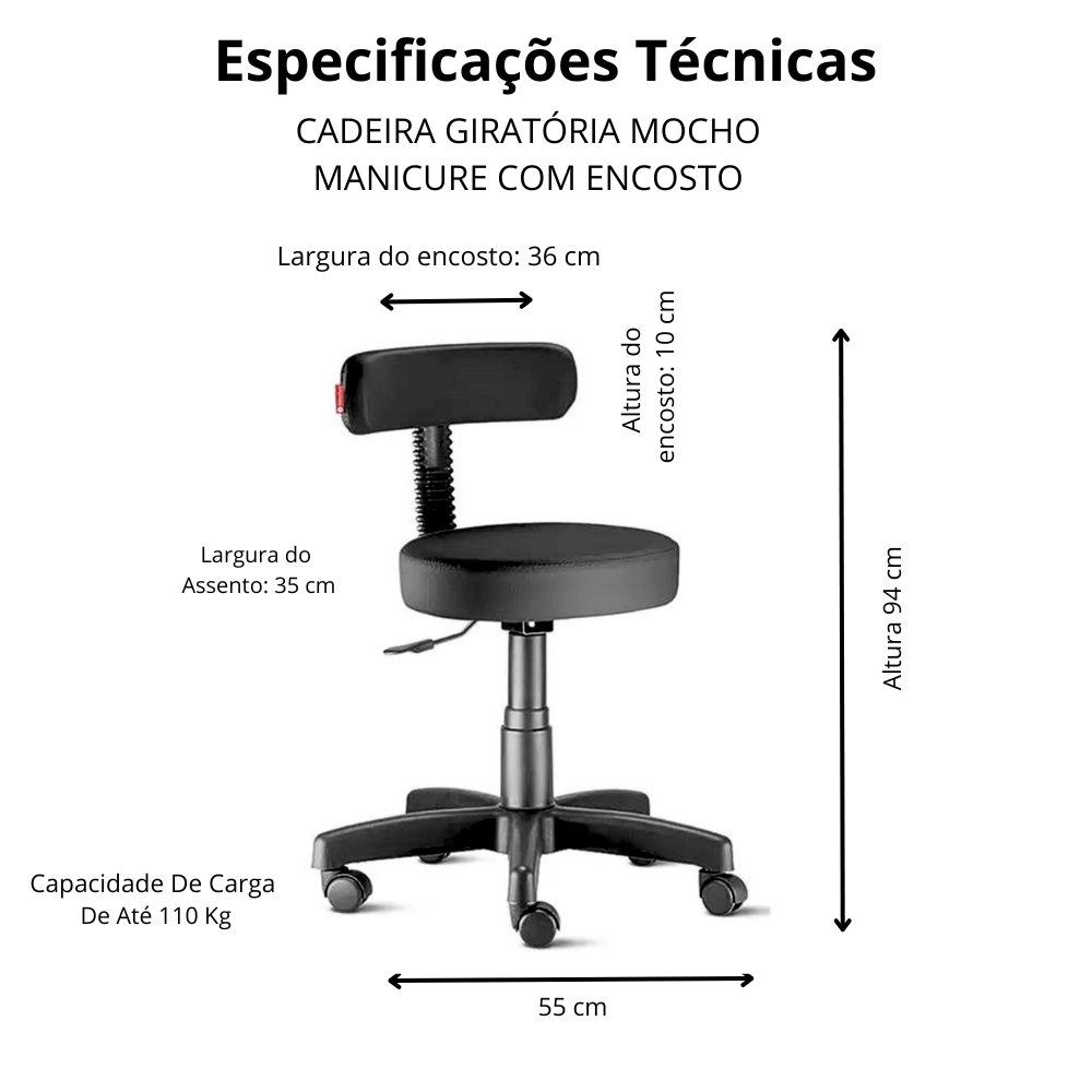 Cadeira Mocho Podologo Giratório Estética Massagista e Tatuador, varias cores direto da Fábrica Renaflex
