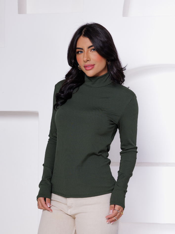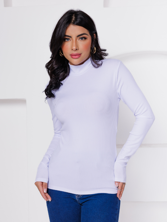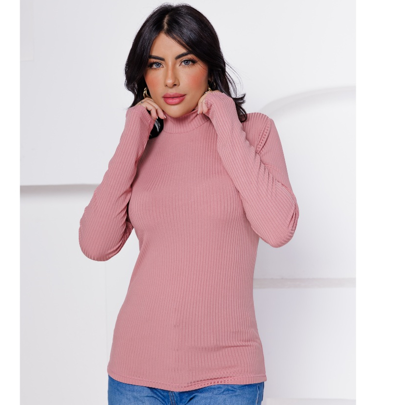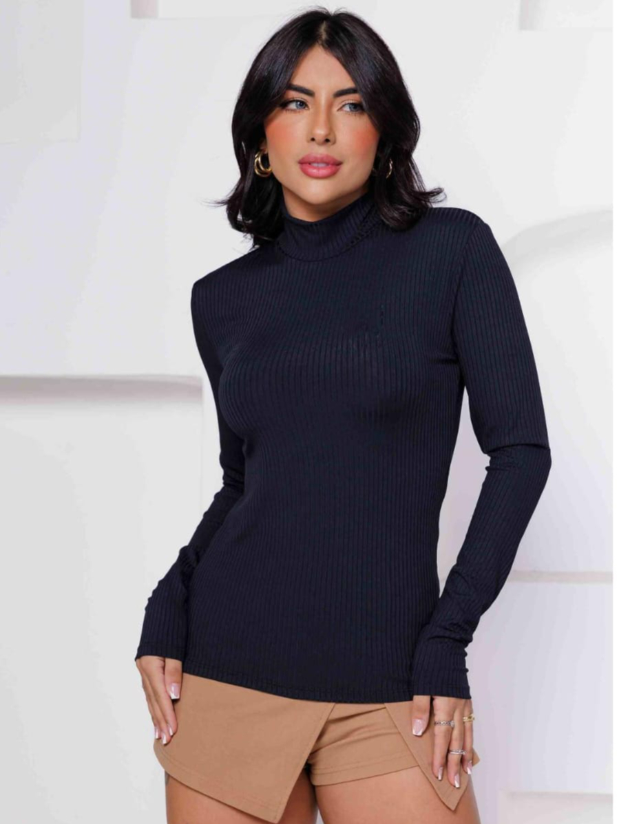 Blusa de Frio Feminina CACHARREL Segunda Pele Manga Longa CANELADA GOLA ALTA