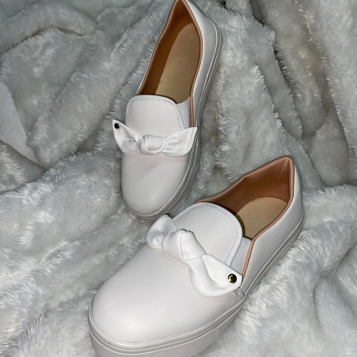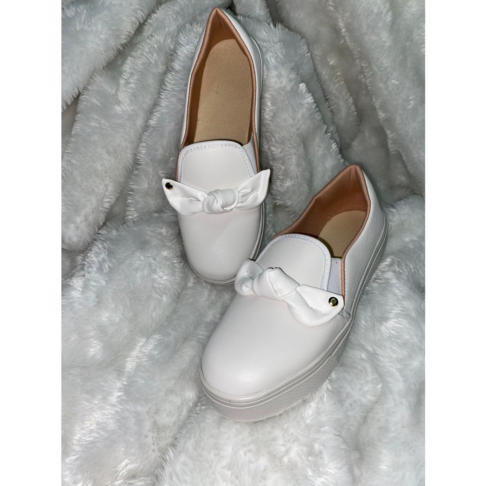 Tênis Feminino Slip On Casual Confortável Macio Calce Fácil Branco Enfermeira Área Saúde IA54