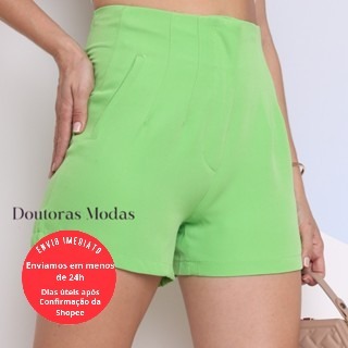 Doutoras modas Short alfaiataria modelo zr feminino com bolso fake lateral eloquência com ziper moda primavera 9256