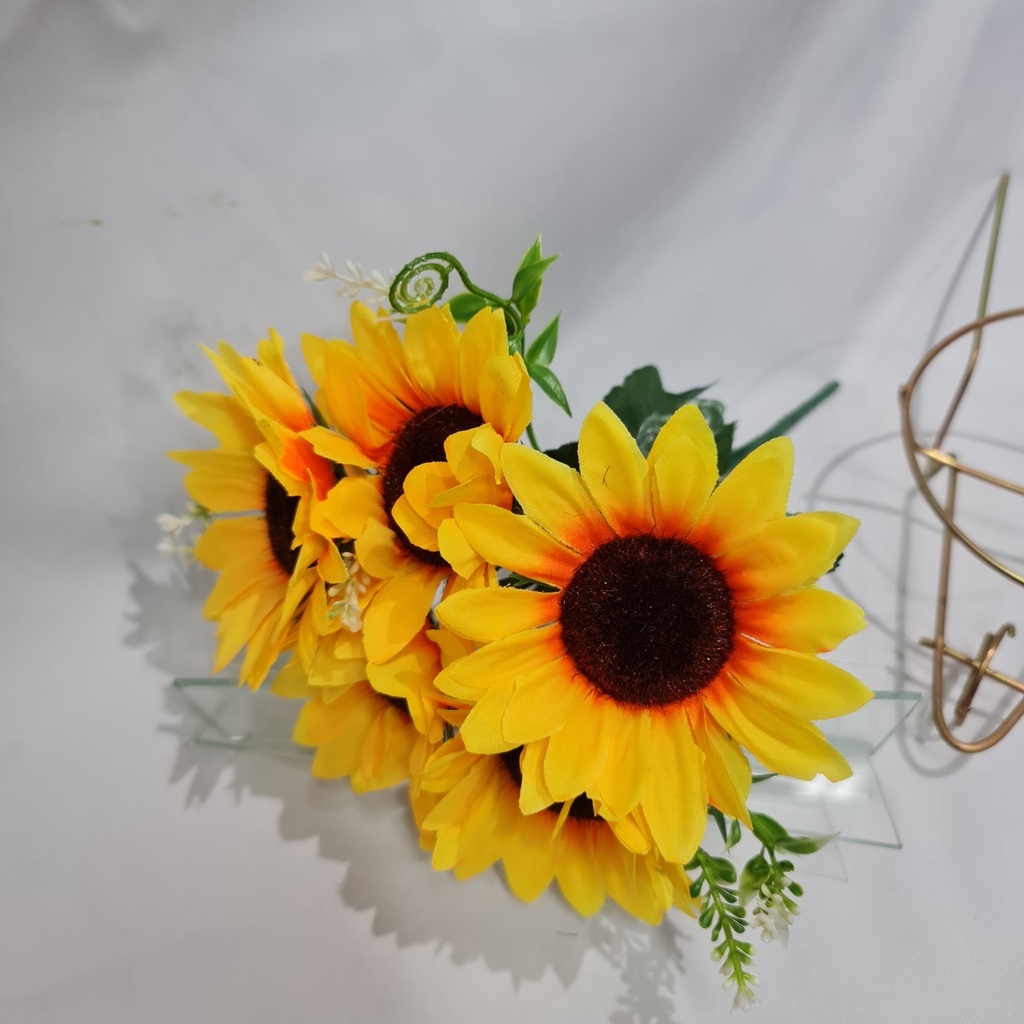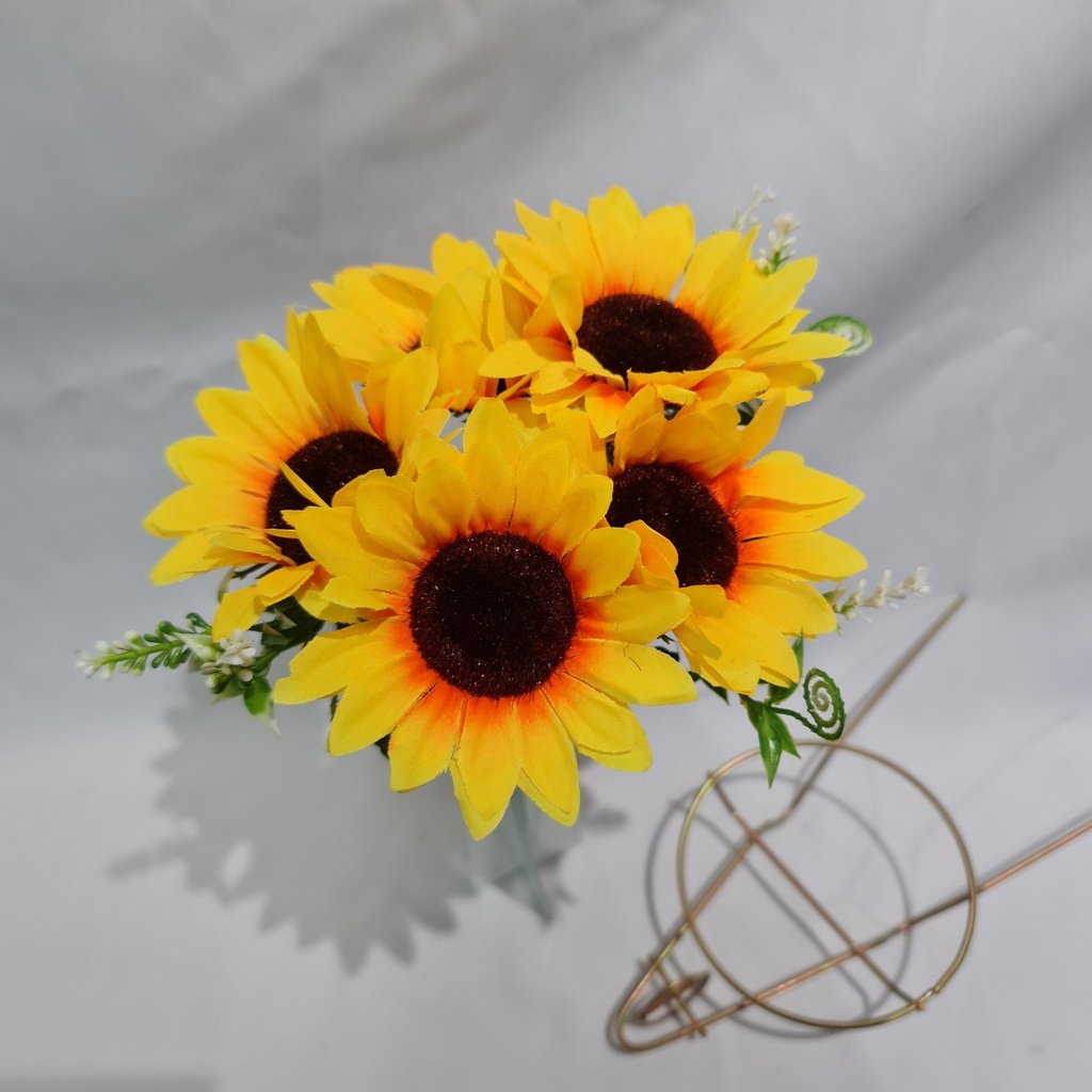 Arranjo Com 5 Flor Girassol Artificial P/ Decoração Casamento, Arranjos, Decorar Festas e casa